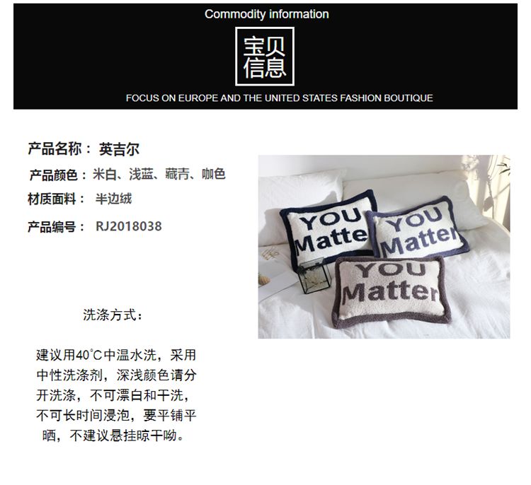 商品名称:(总)暖绵绵英吉尔字母靠枕软绵绵抱枕靠垫腰枕含芯单只