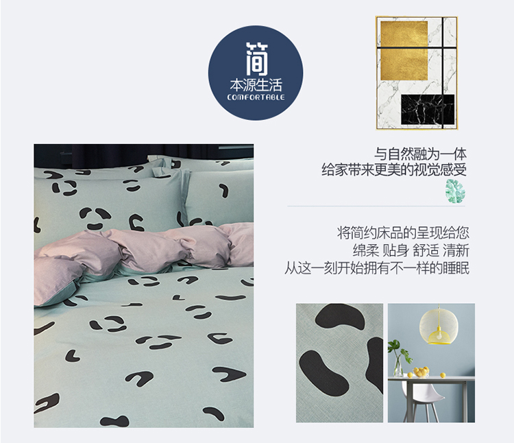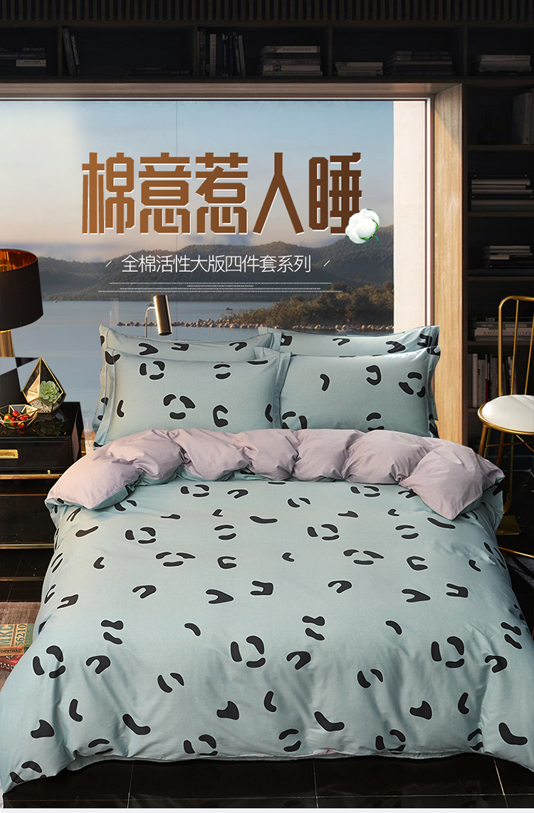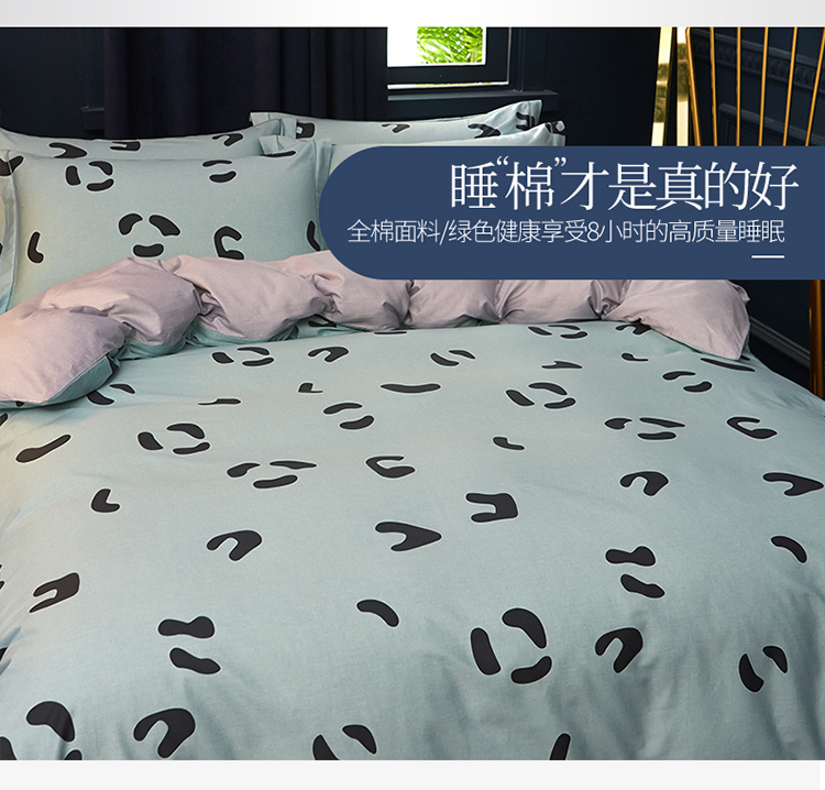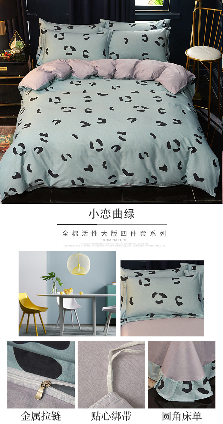商品名称:雲归梦 2019全棉活性大版简约卡通风格四件套 小恋曲绿