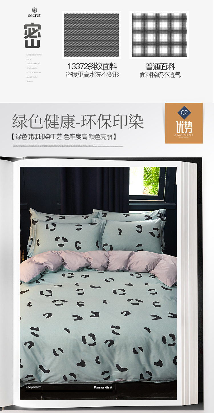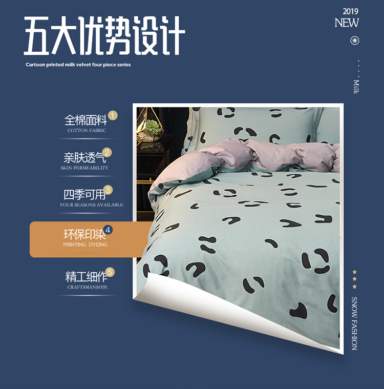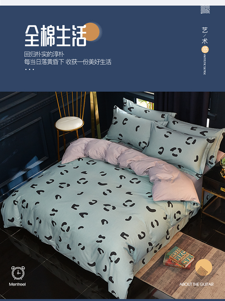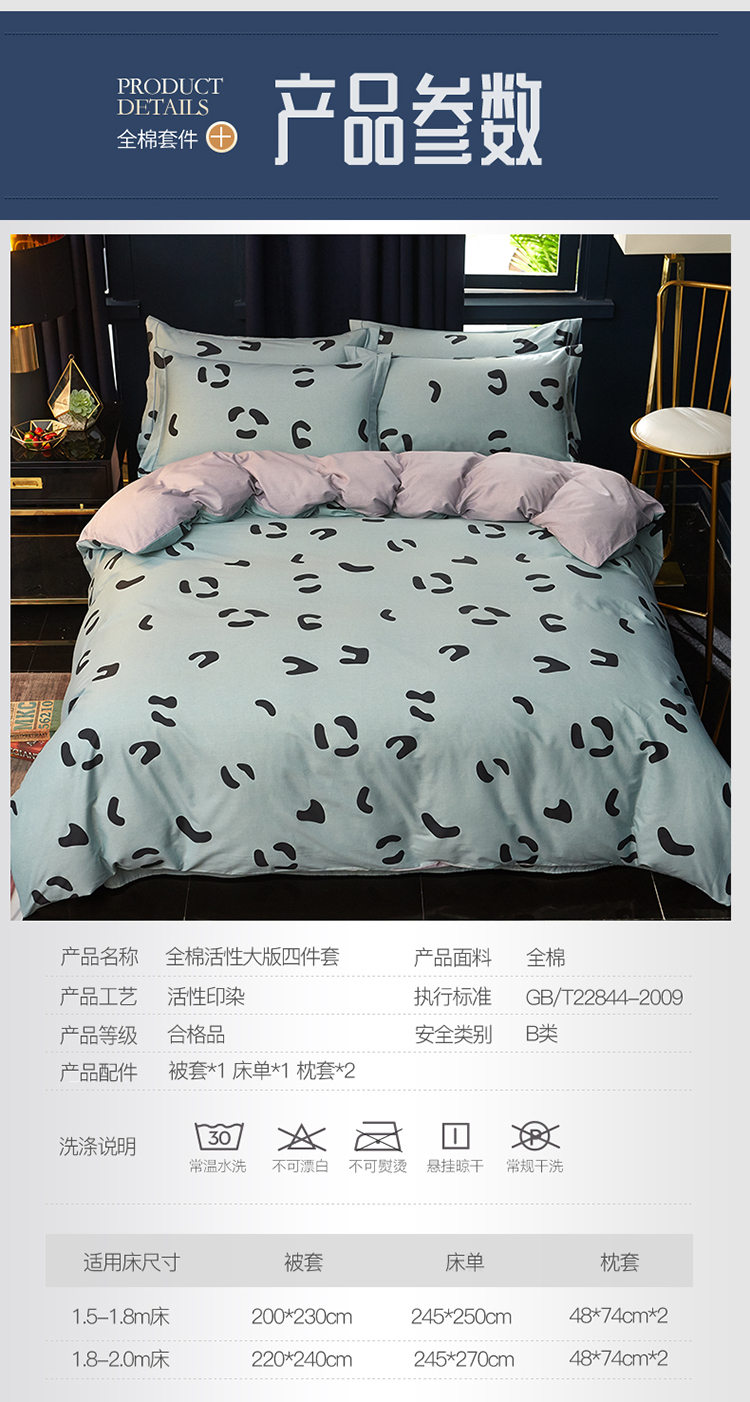 商品名称:雲归梦 2019全棉活性大版简约卡通风格四件套 小恋曲绿