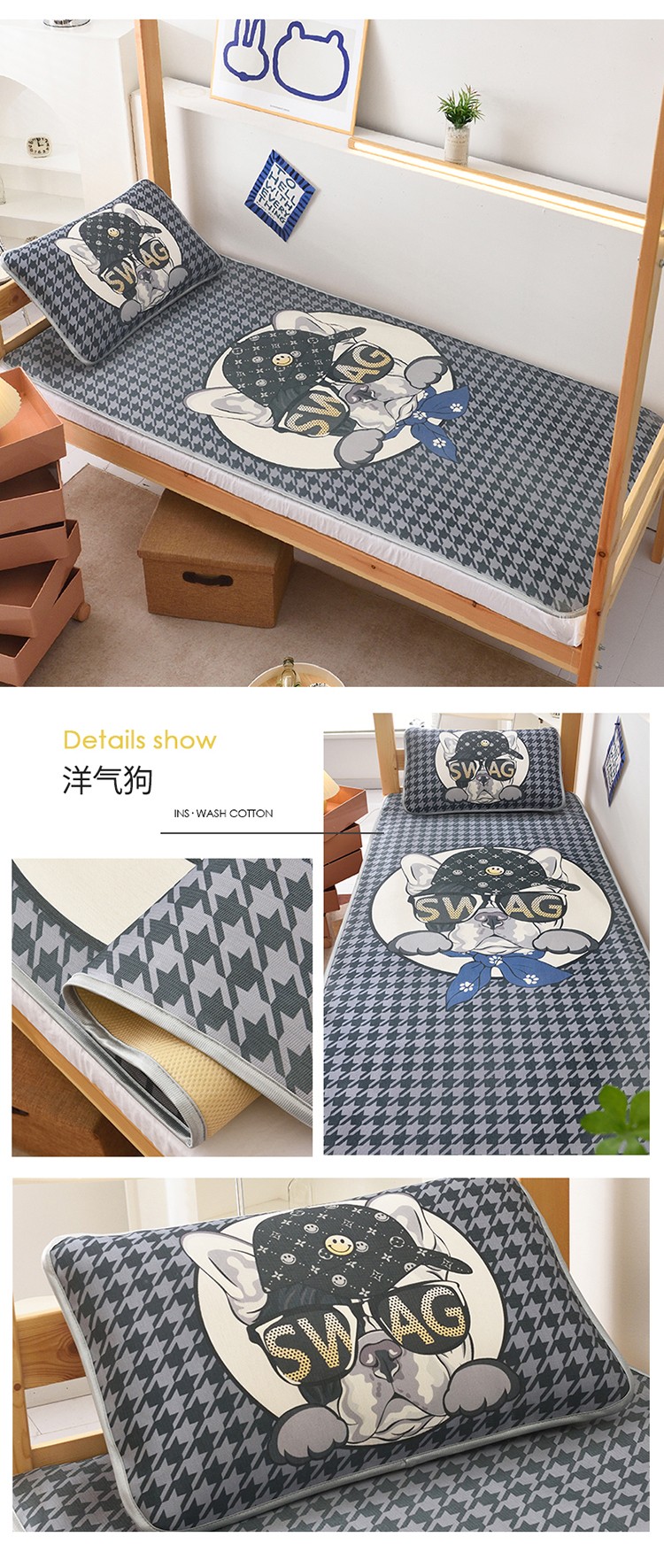 (总)多樂家纺2024新款日系卡通学生床大版冰丝凉席两件套