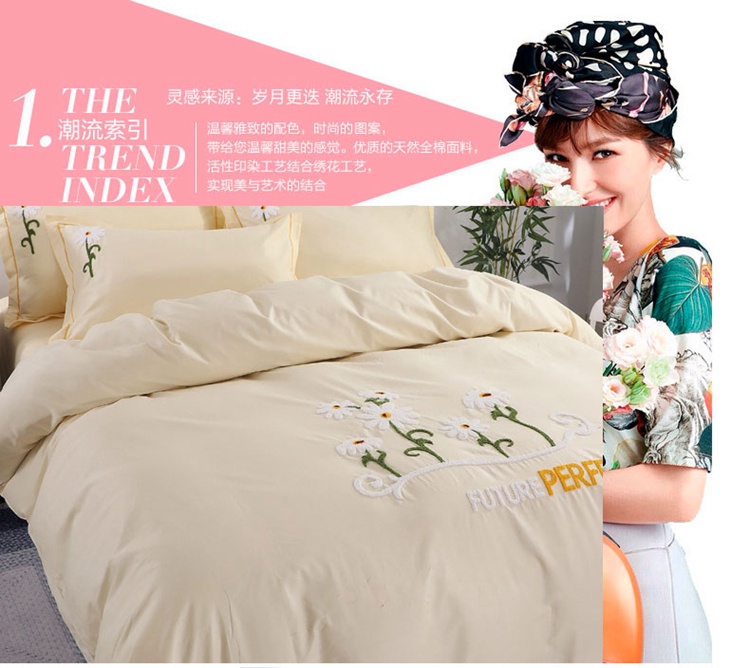 商品名称:13372田园风全棉毛巾绣四件套纯棉绣花四件套全棉刺绣四件套
