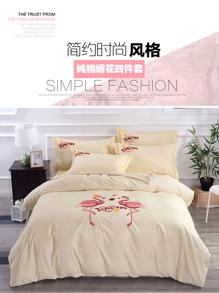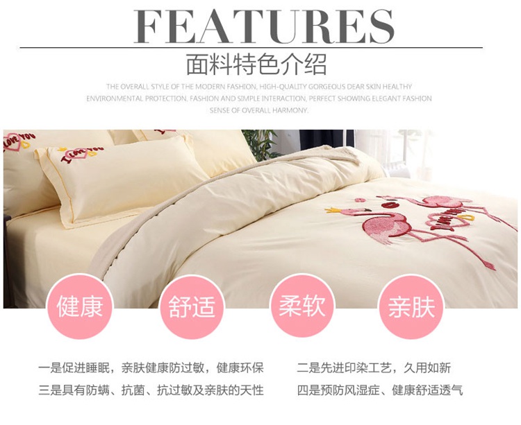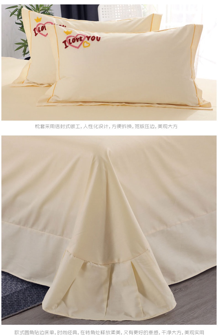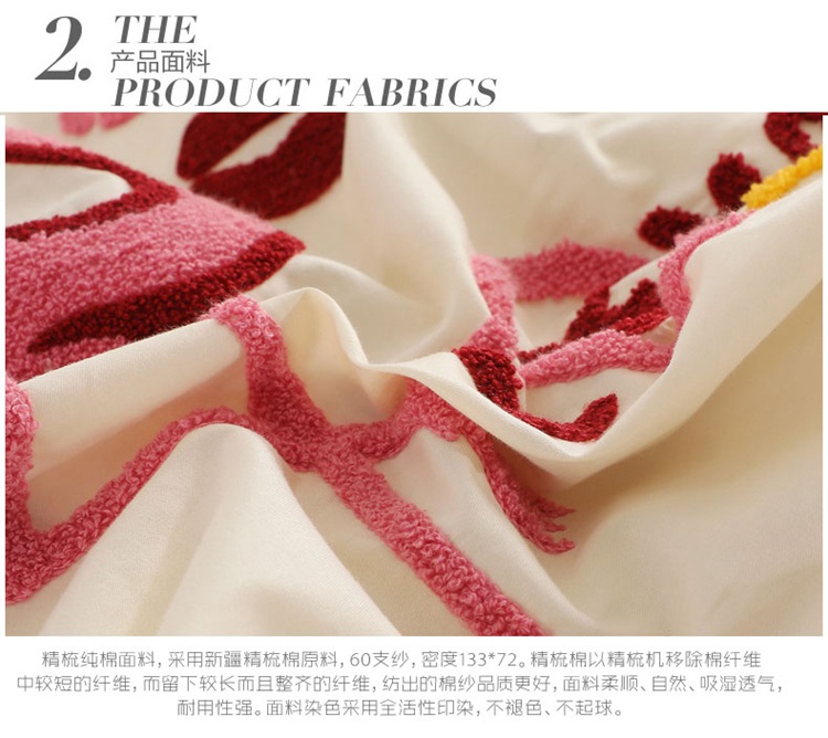 全棉133*72纯色绣花四件套,采用新疆精梳棉,60支纱,密度133*72。专版绣花花型设计,高精度、高密度立体毛巾绣工艺,相比普通绣花更加牢固不易脱线,美观又耐用。