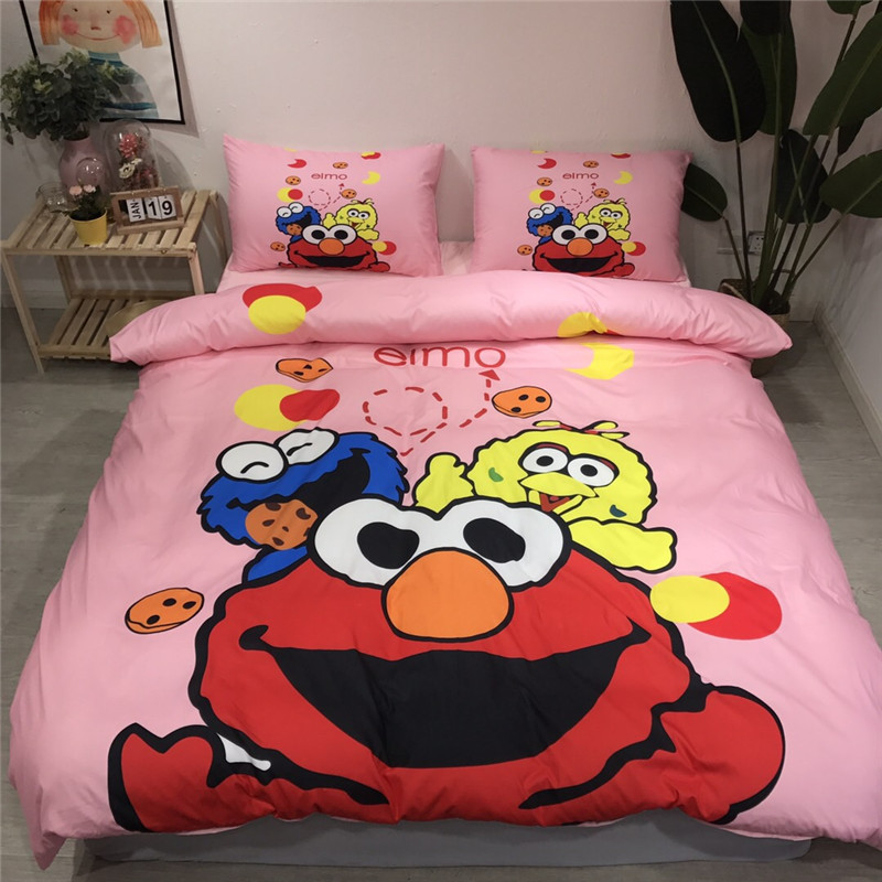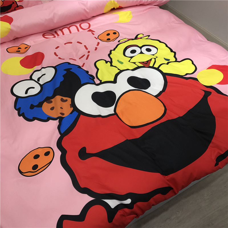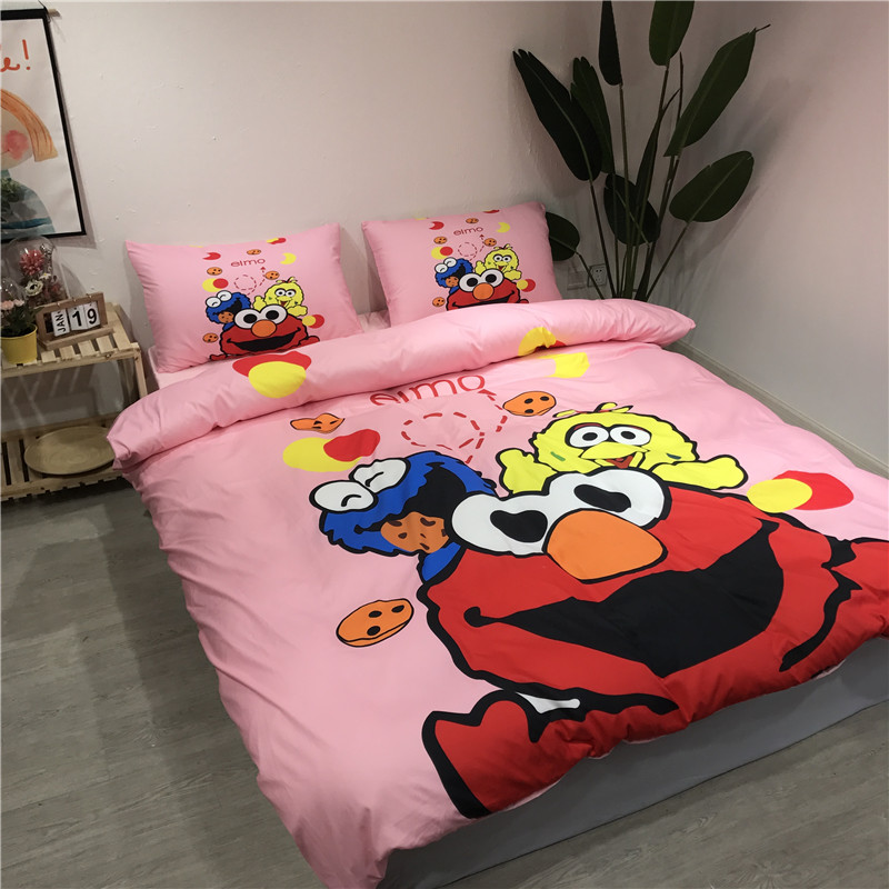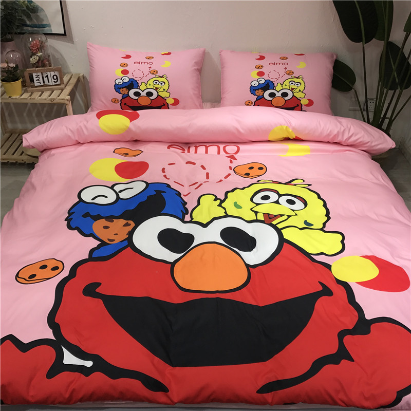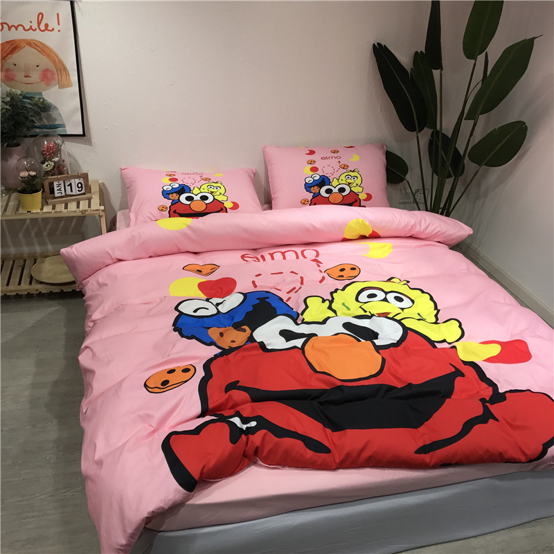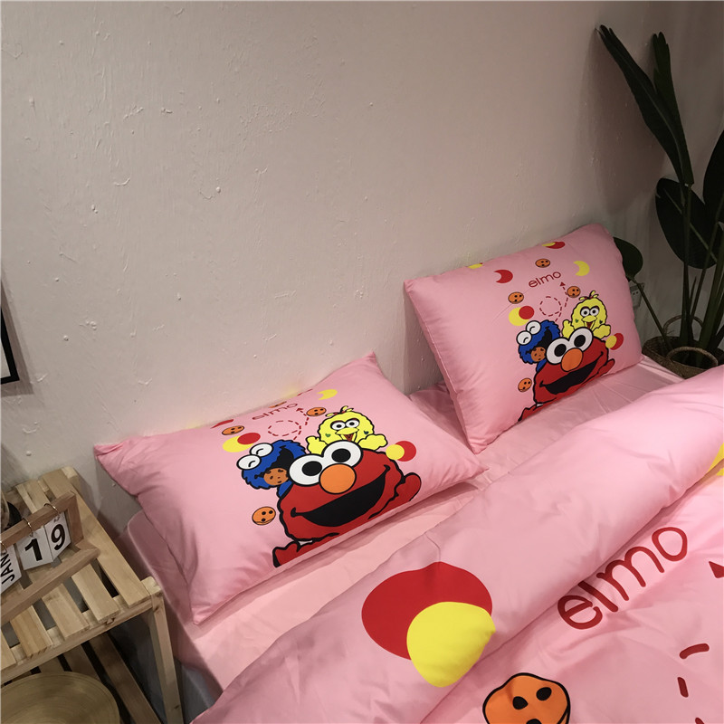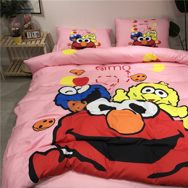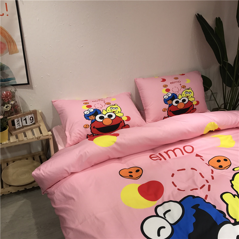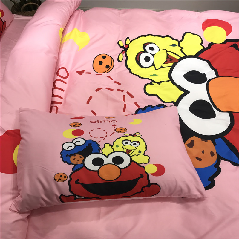 芊芷萱家纺 2019新款水洗真丝四件套 粉底芝麻街
