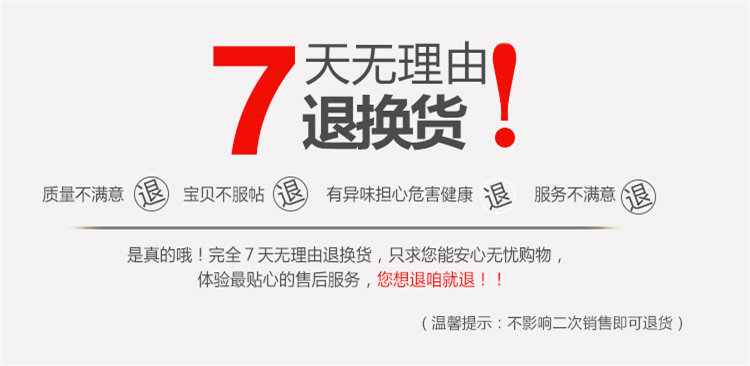 | 非质量问题、不影响二次销售,在30天内支持退换货。 | |