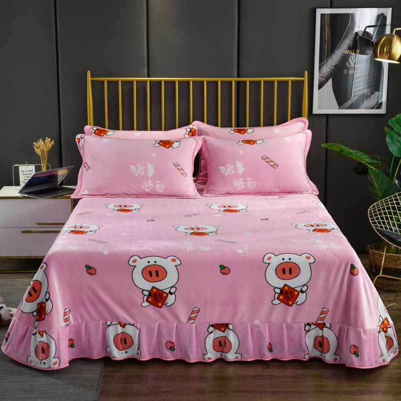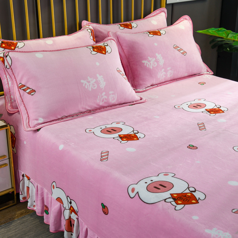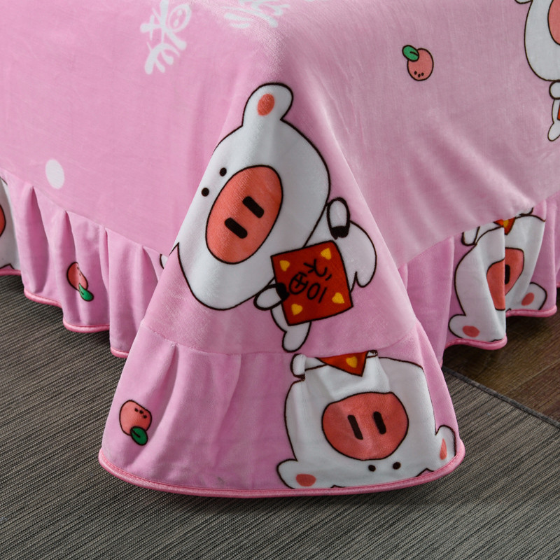 雨洋家纺 2025新款加厚金貂绒床裙床盖 诸事顺利