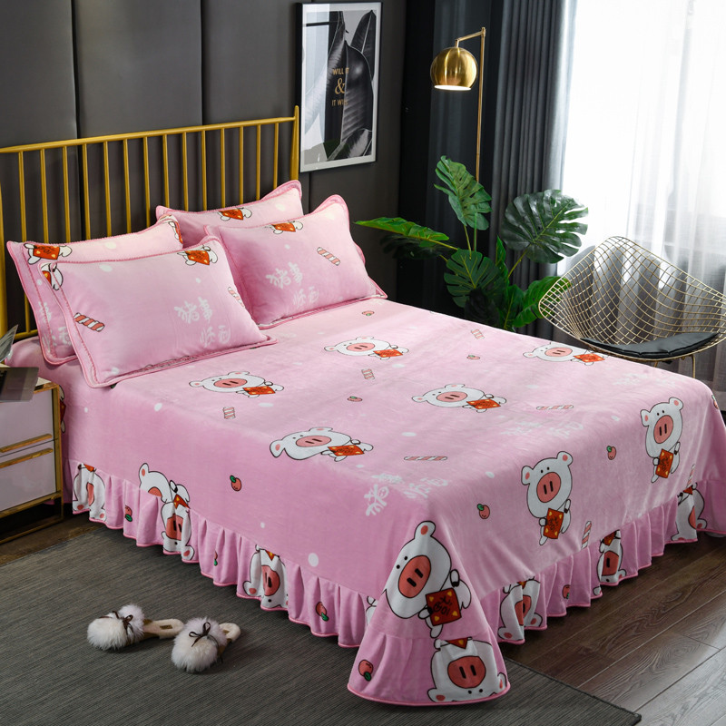 商品名称:雨洋家纺 2025新款加厚金貂绒床裙床盖 诸事顺利