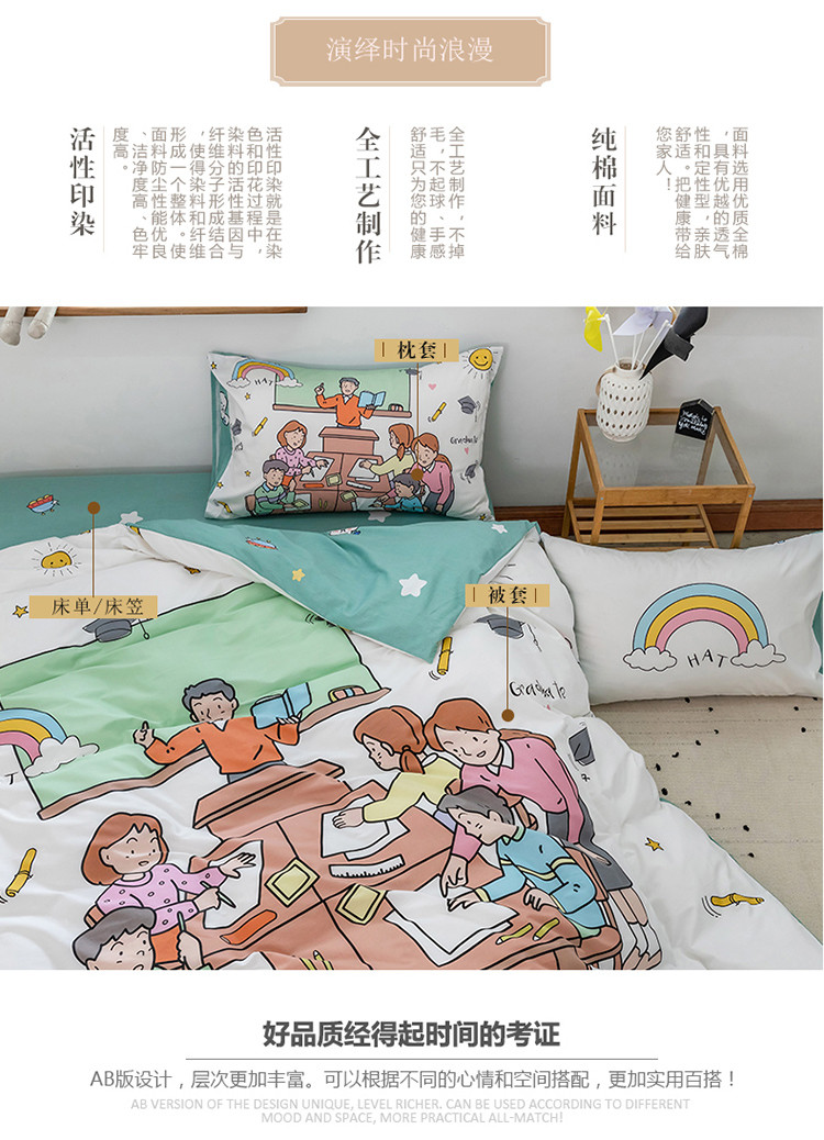 窝米 2020设计师合作款大版卡通全棉四件套 拜托了老师