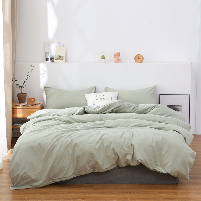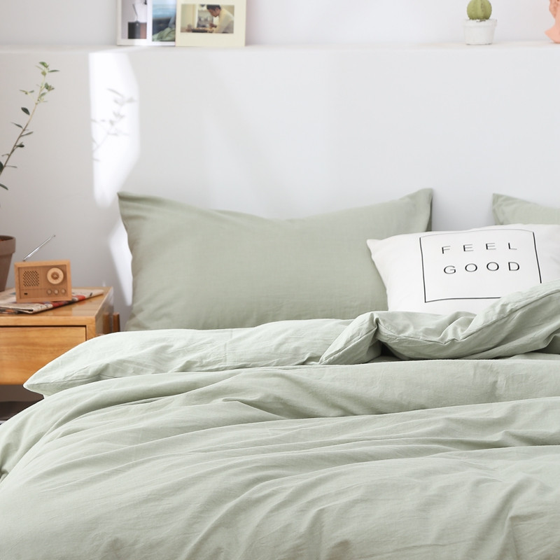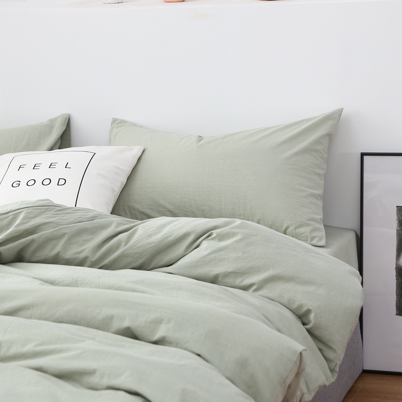 当前位置: 91家纺网 > 商品网购 > 床品套件 > 四件套 > 全棉普通四件套 > 久典家纺 2019色织水洗棉基础款系列汇总四件套床单款草绿