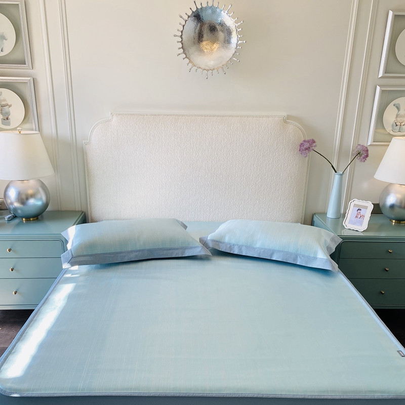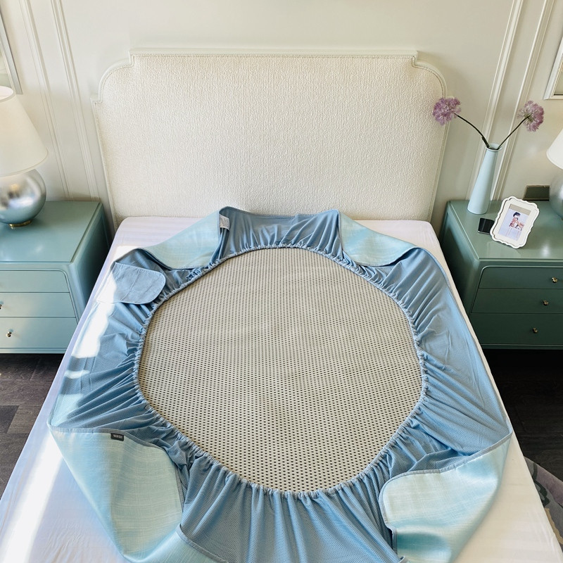 本希2020新款可水洗冰丝凉席提花床笠系列实拍图曼森床笠-绿