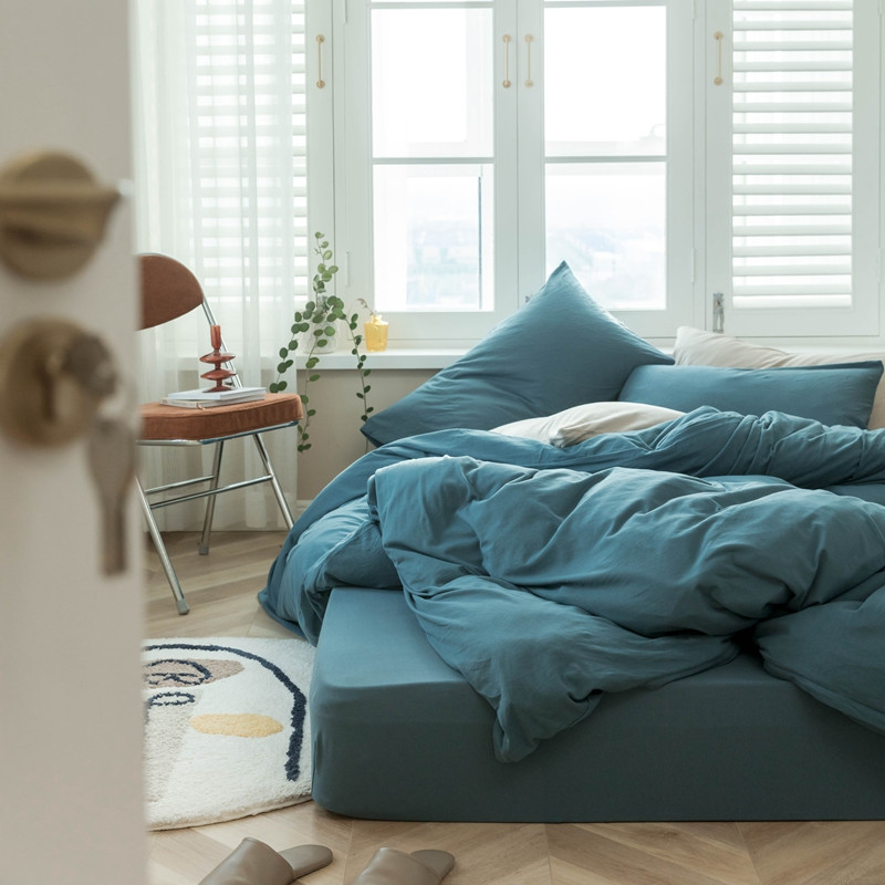 (总)华超针织 2021新款天竺棉千鸟格四件套,千鸟格豆沙,千鸟格海蓝,千鸟格姜黄,千鸟格墨绿,千鸟格藕色,千鸟格炭黑