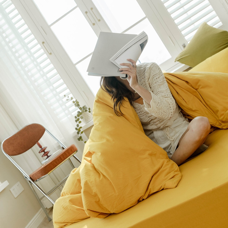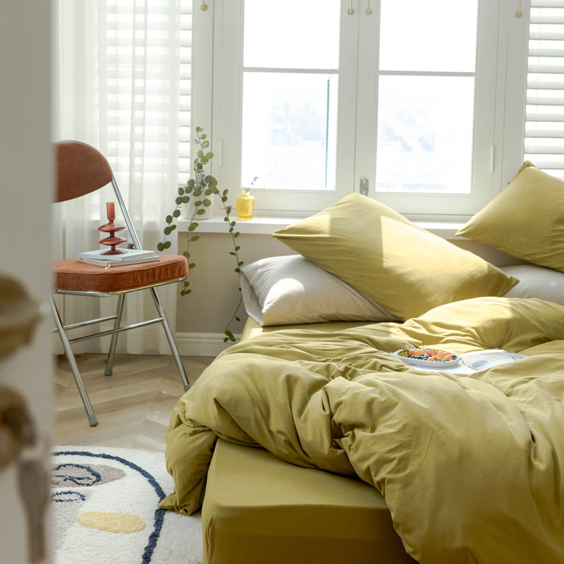 (总)华超针织 2021新款天竺棉魔方格四件套,魔方格姜黄,魔方格奶茶,魔方格南瓜,魔方格深灰,魔方格紫粉