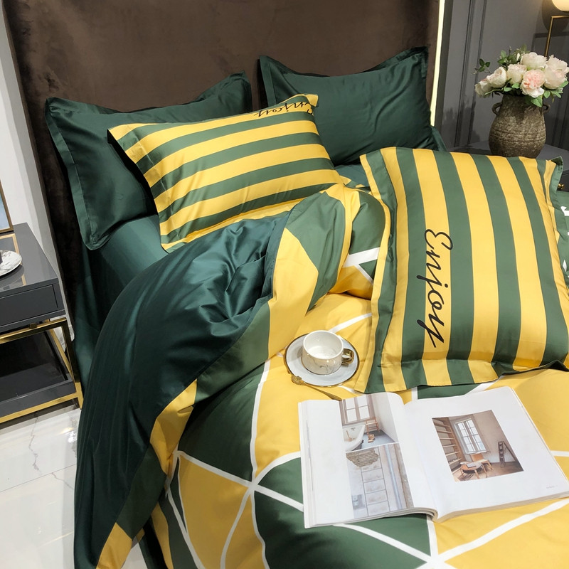 太古汇 2020新款60支数码印花小边款四件套丹尼斯-绿