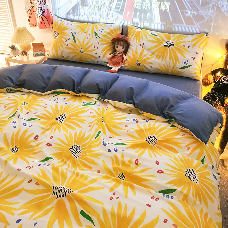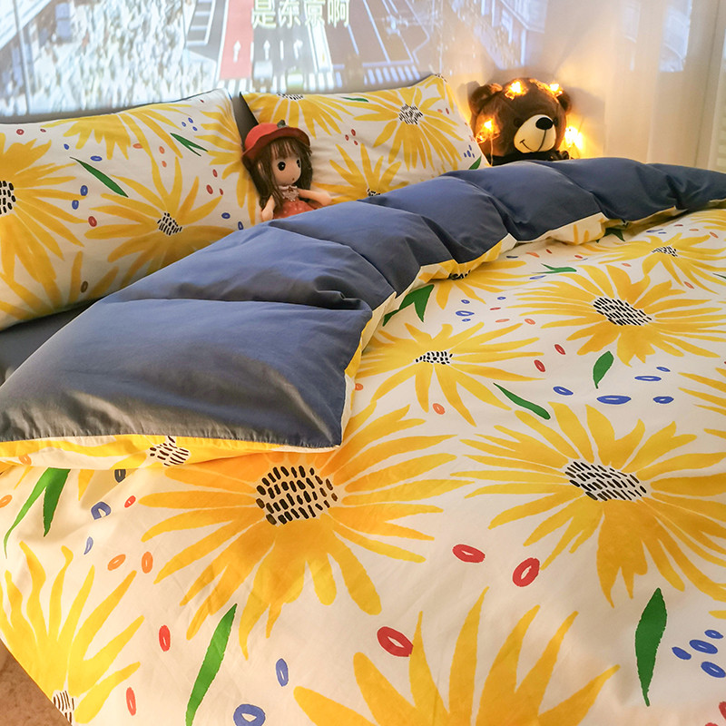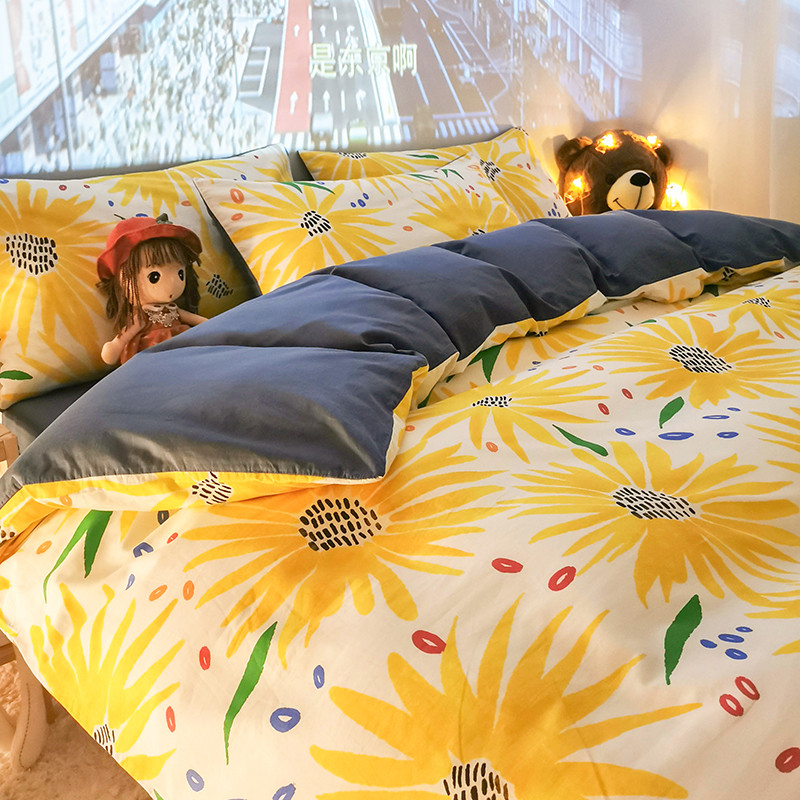 商品名称:HL原创新款13372全棉四件套夜晚网红风实拍图 心若向阳