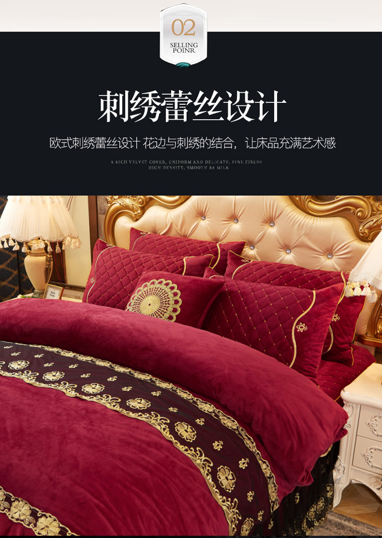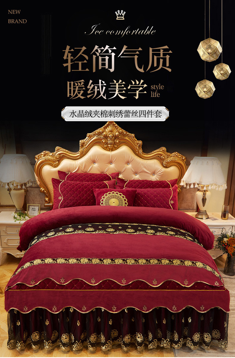 当前位置: 91家纺网 > 商品网购 > 床品套件 > 四件套 > 水晶绒四件套 > 菊上2021新款加厚水晶绒四件套金色年华系列 魅红