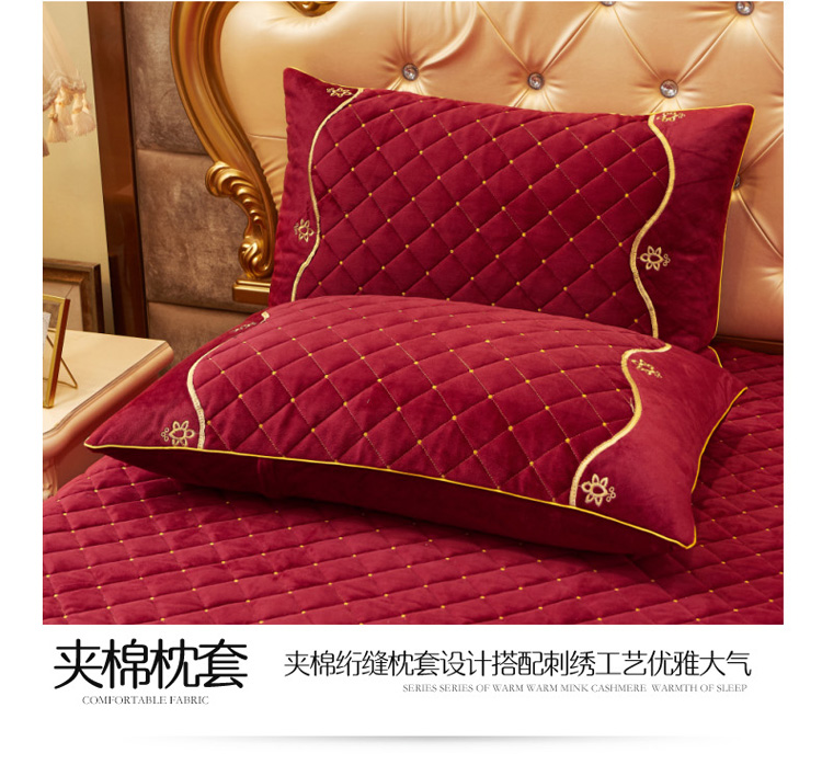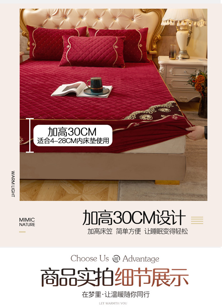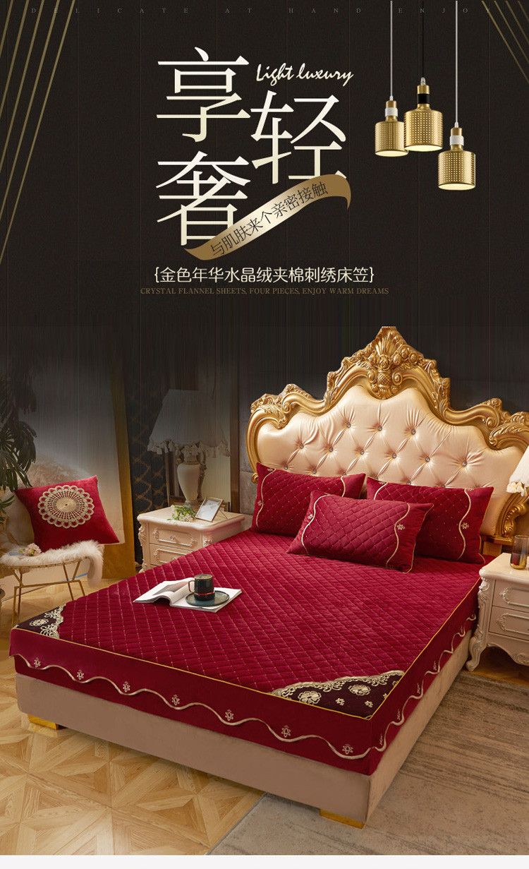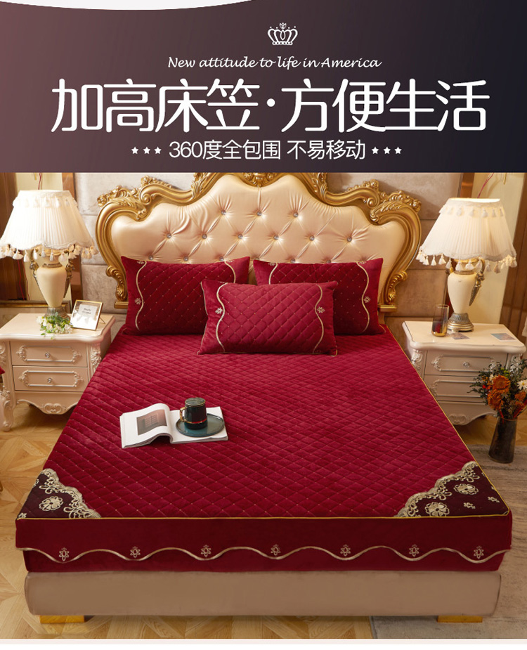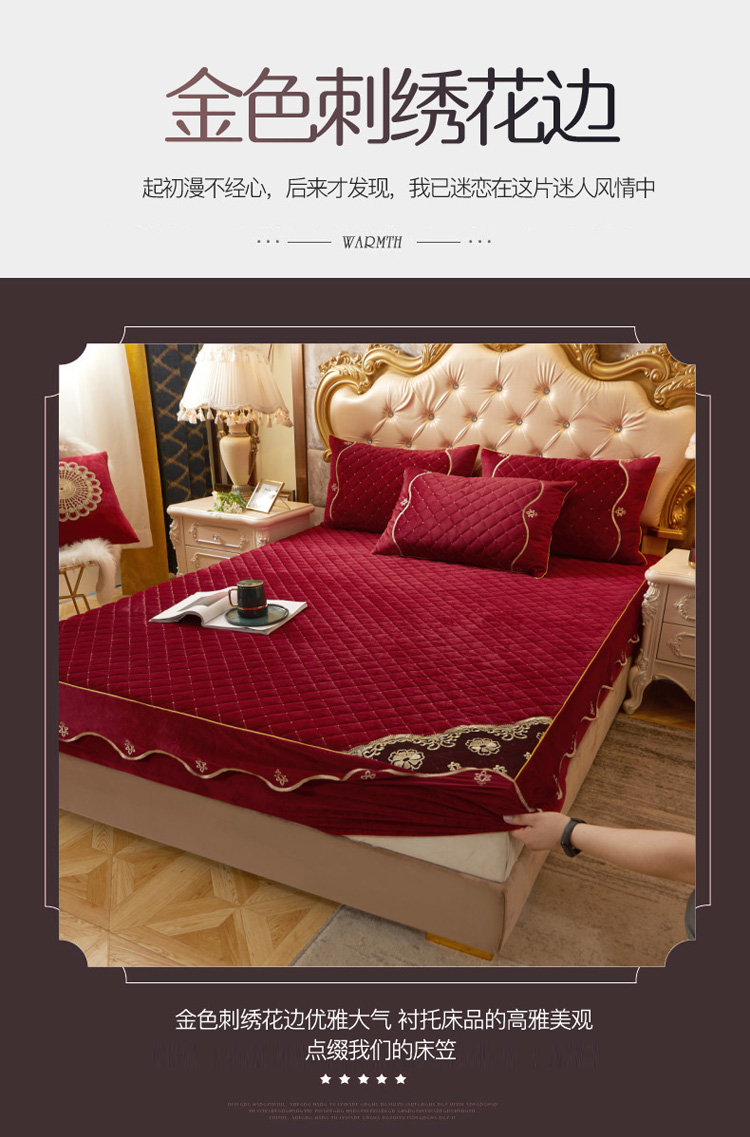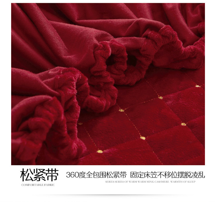 菊上2021新款加厚水晶绒单床笠金色年华系列 魅红