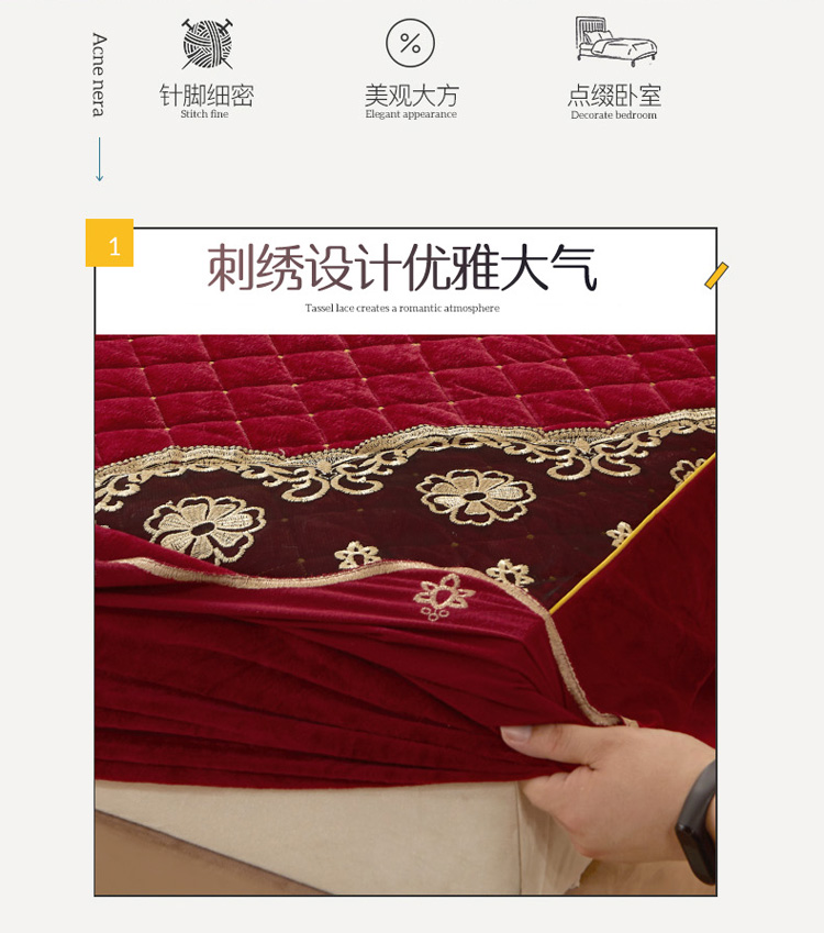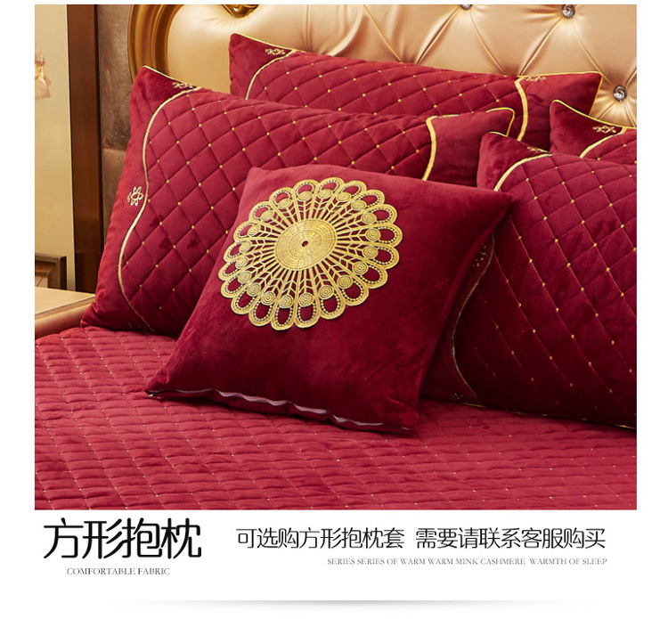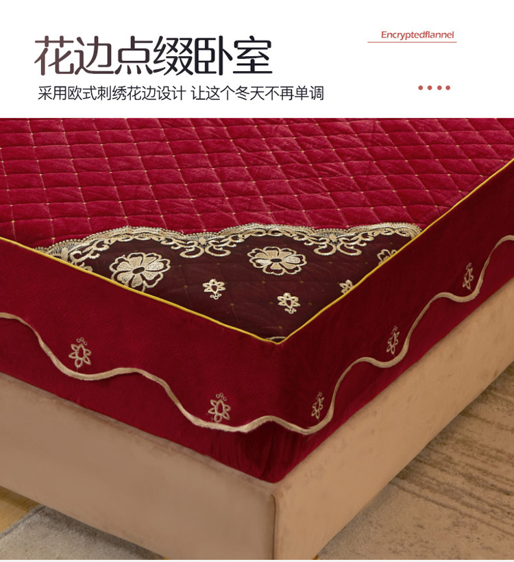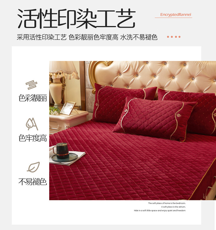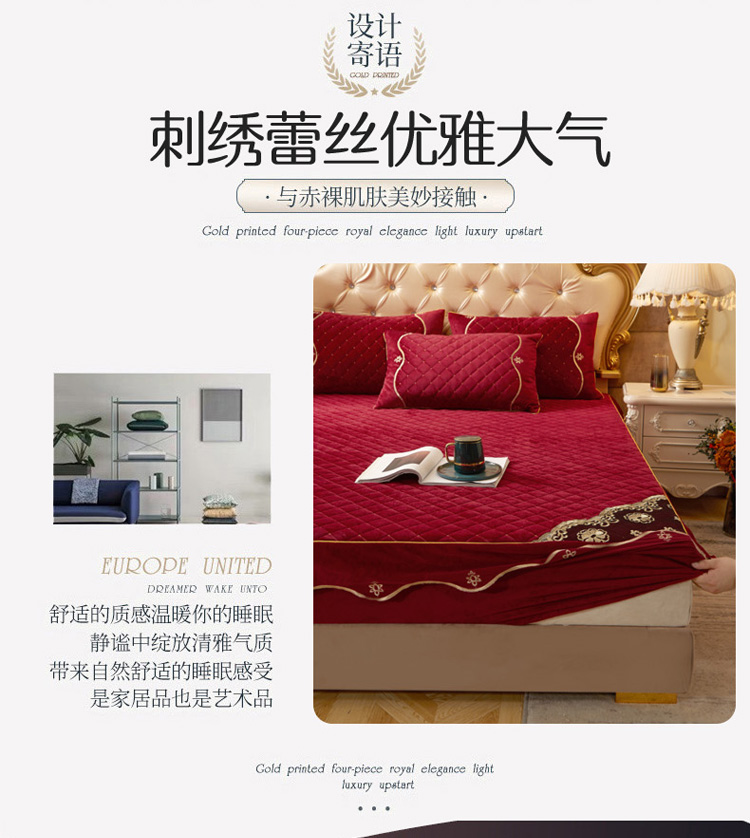 • 91家纺网 家纺一手货源 找家纺 菊上2021新款加厚水晶绒单床笠金色年华系列 魅红