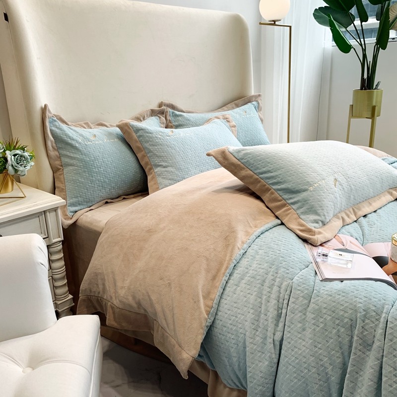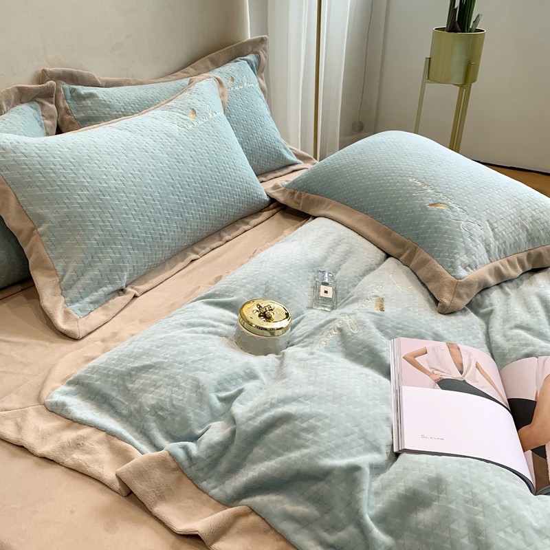 商品名称:馨蕊家居 2021新款秋冬轻奢煦暖绒四件套 奥斯汀-水绿