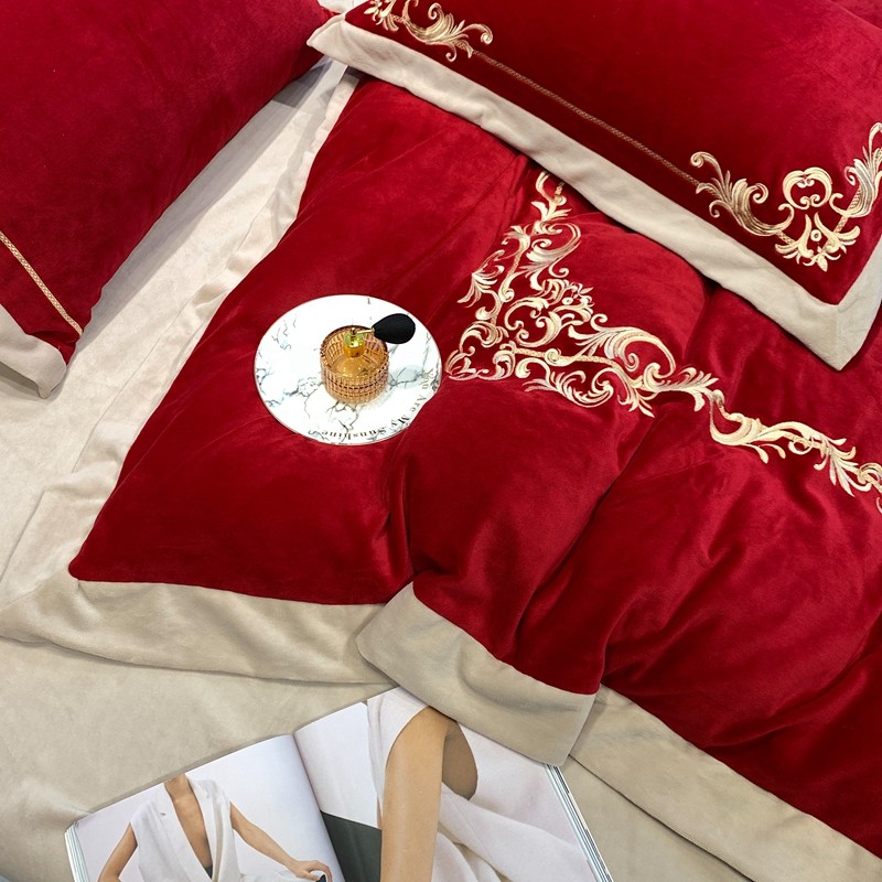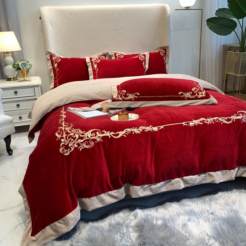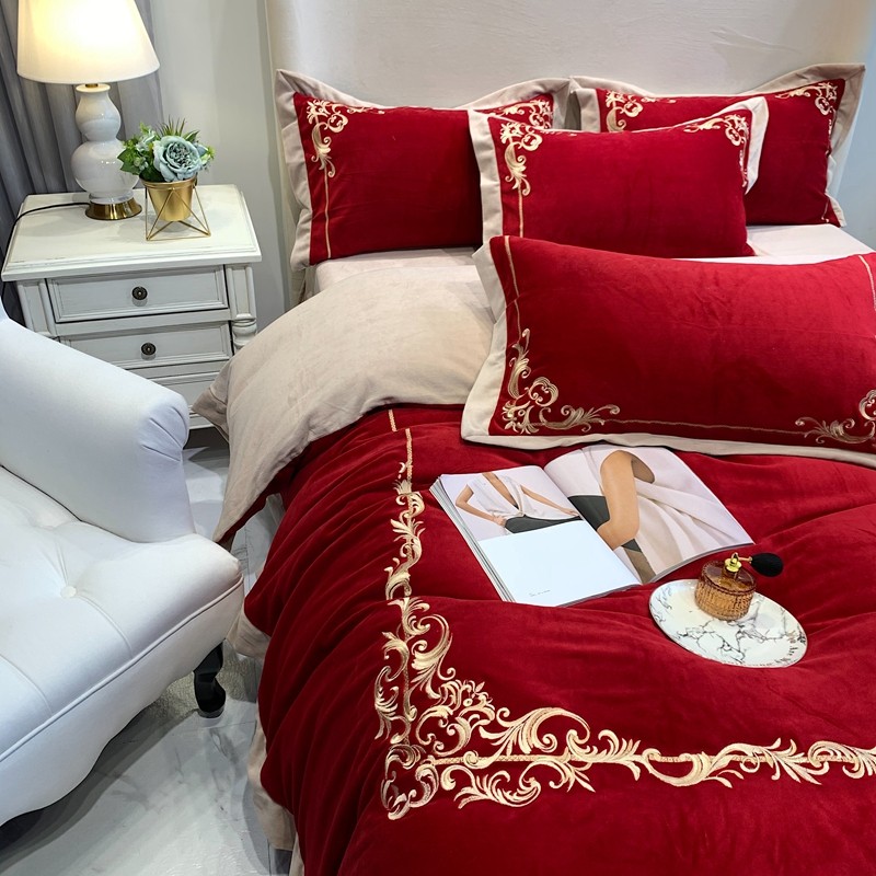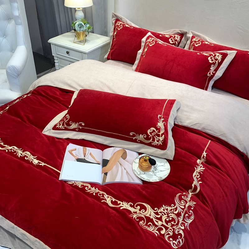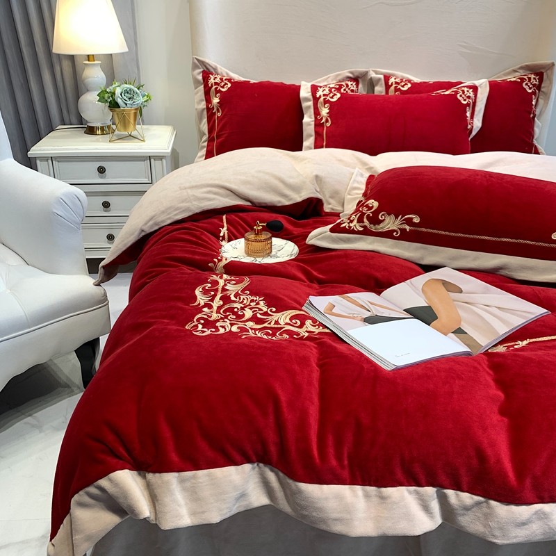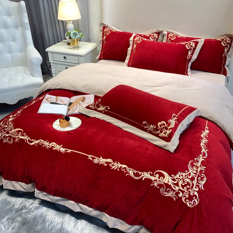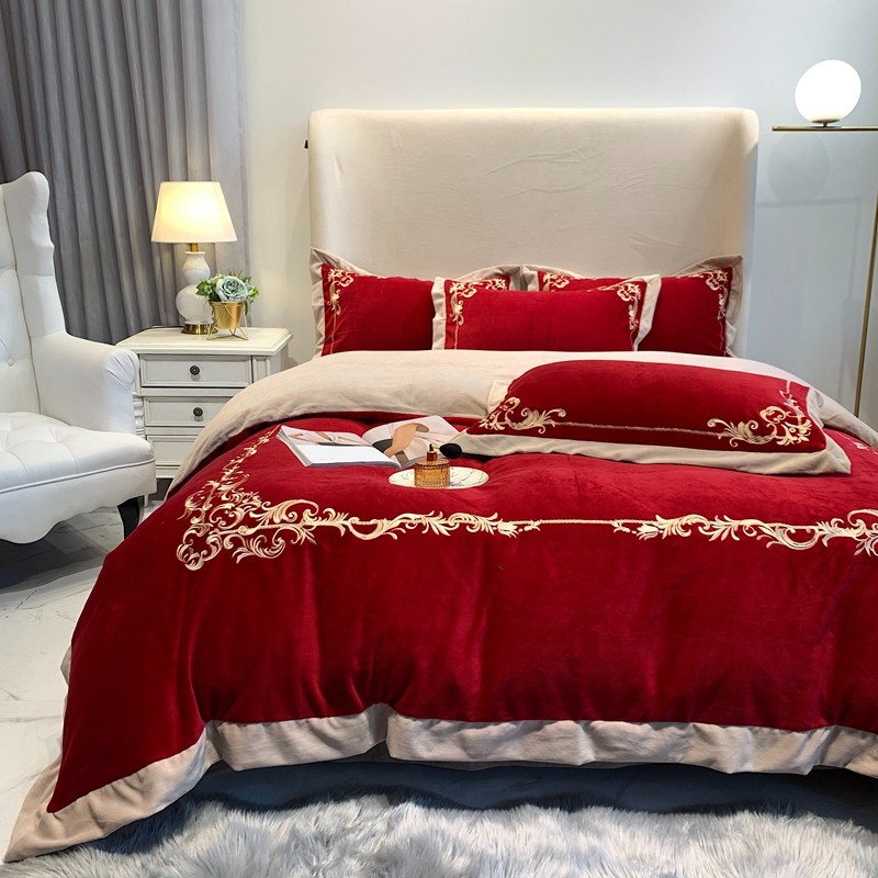 商品名称:馨蕊家居 2021新款秋冬轻奢煦暖绒四件套 巴比伦-温莎红