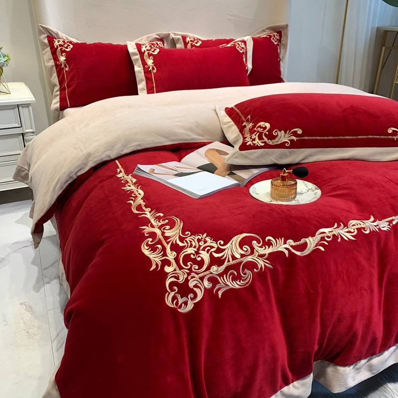 馨蕊家居 2021新款秋冬轻奢煦暖绒四件套 巴比伦-温莎红