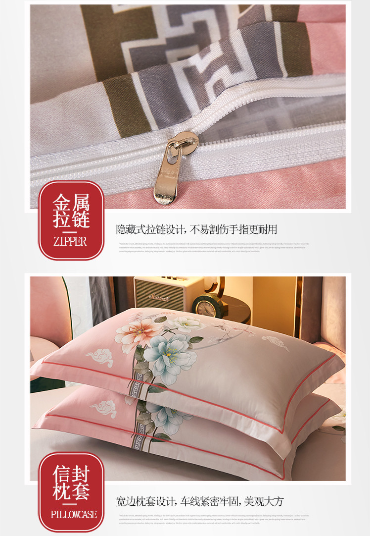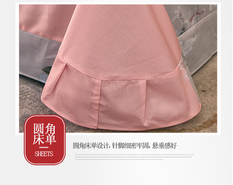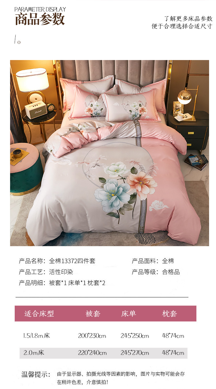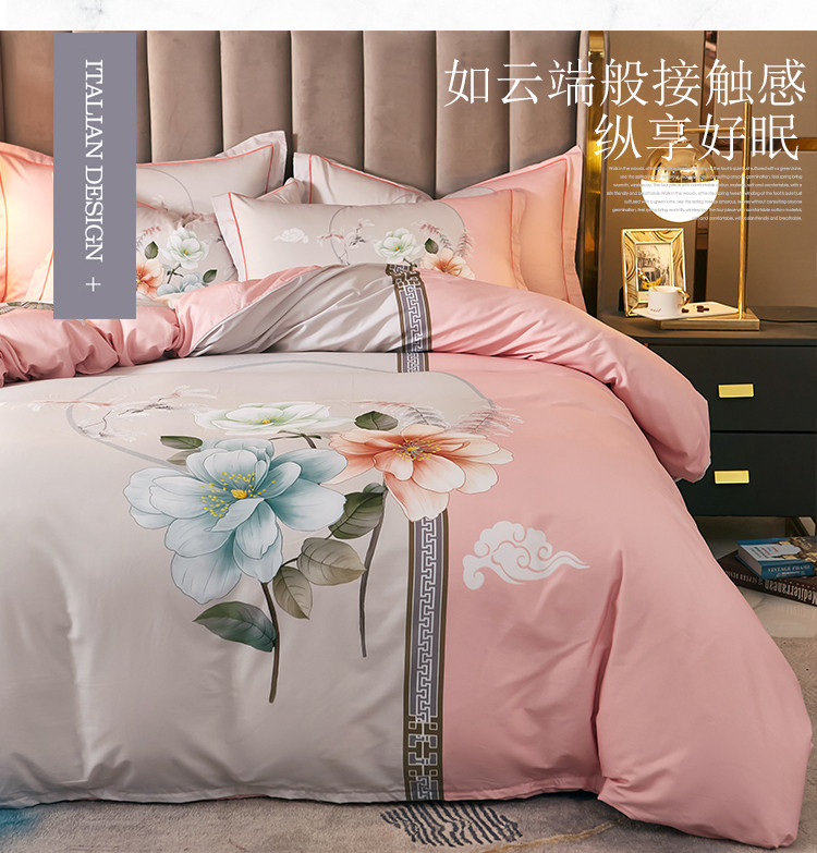商品名称:雲归梦 2021全棉大版四件套中国风花卉 爱如潮水(粉灰)