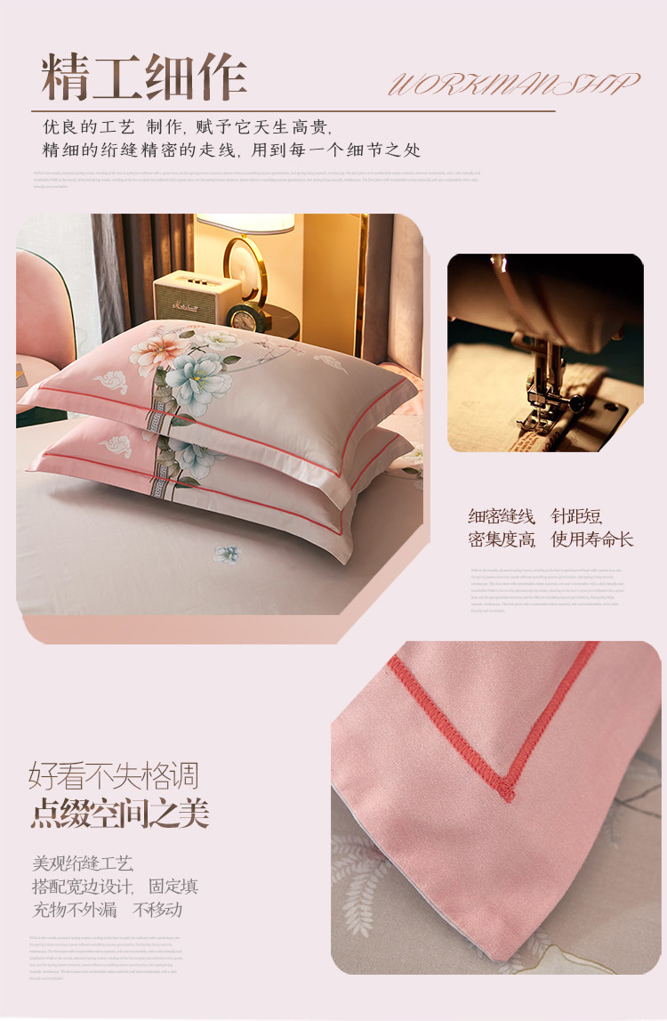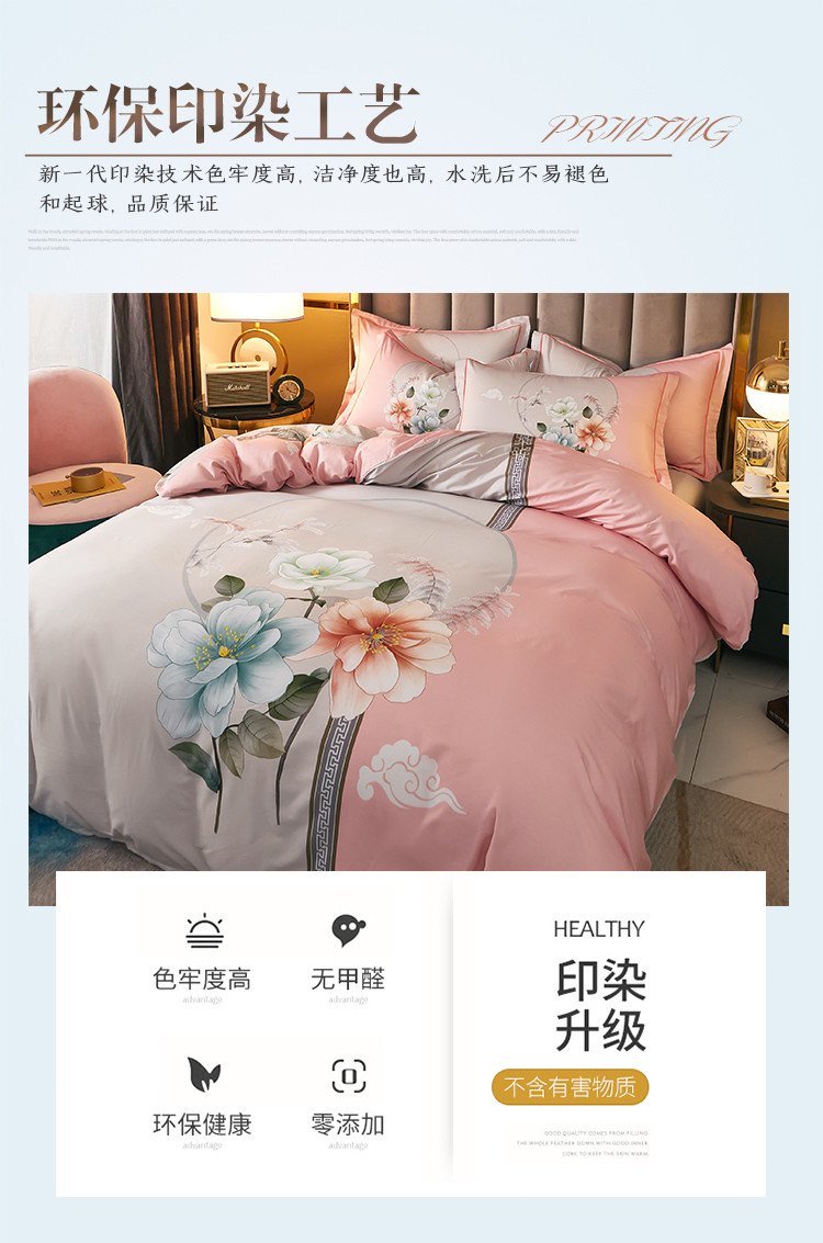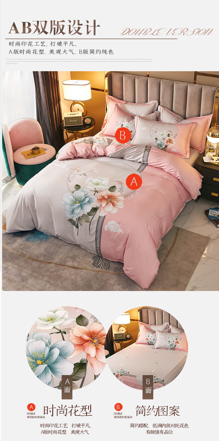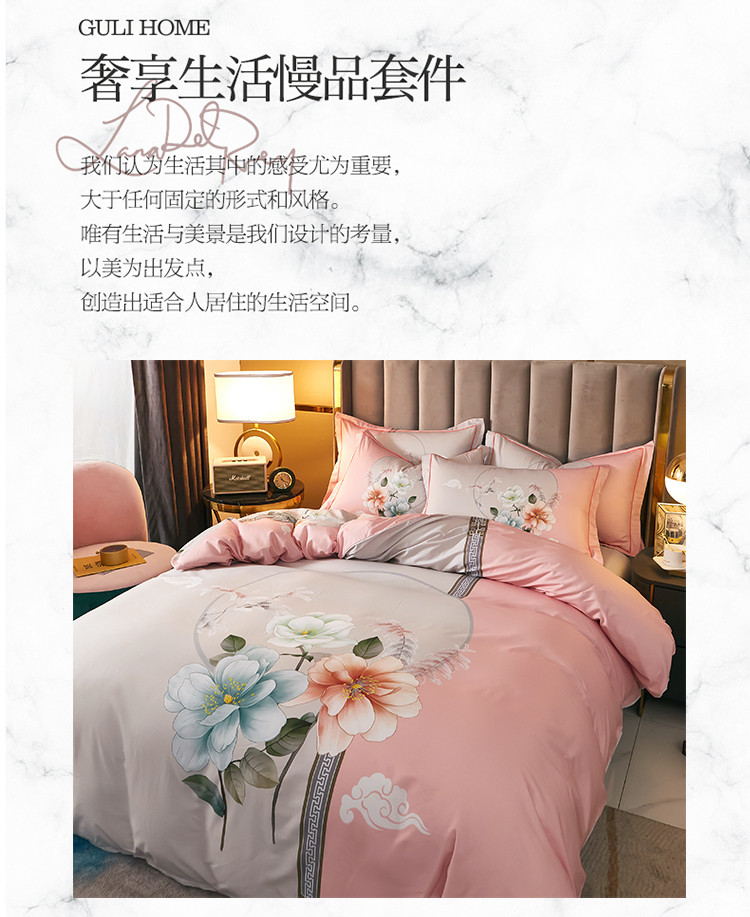 商品名称:雲归梦 2021全棉大版四件套中国风花卉 爱如潮水(粉灰)