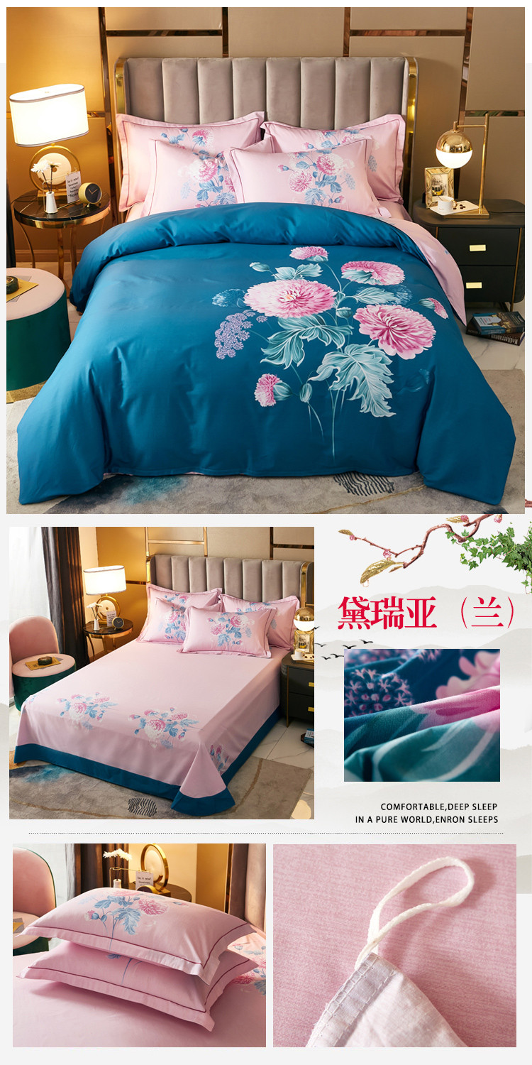 商品名称:雲归梦 2021全棉大版四件套中国风花卉 黛瑞亚(兰)