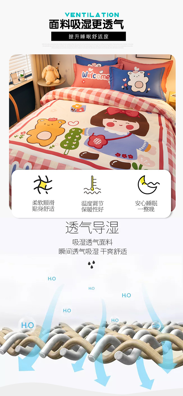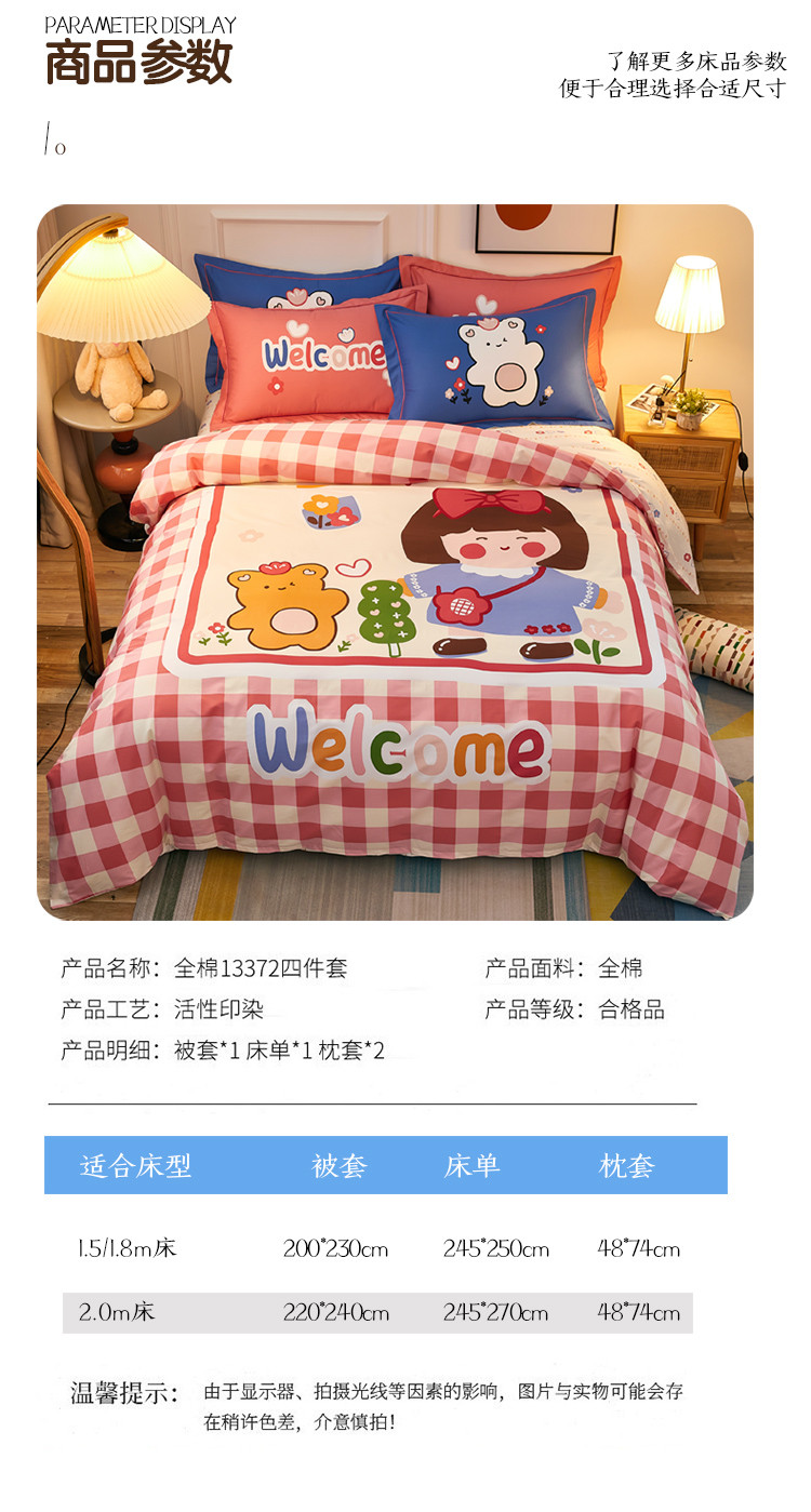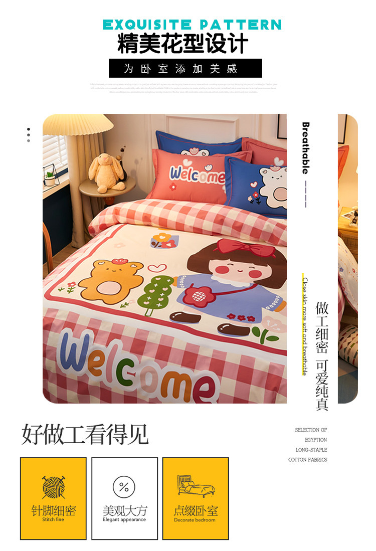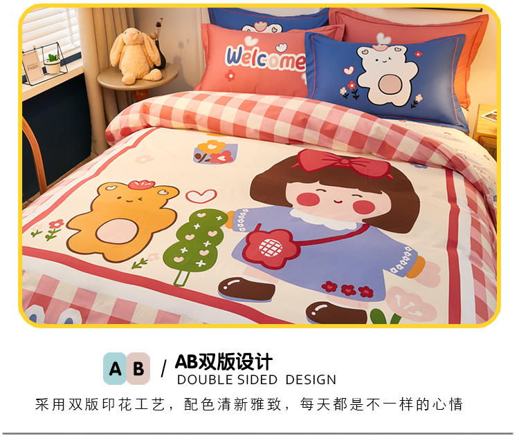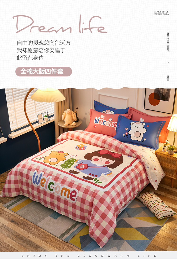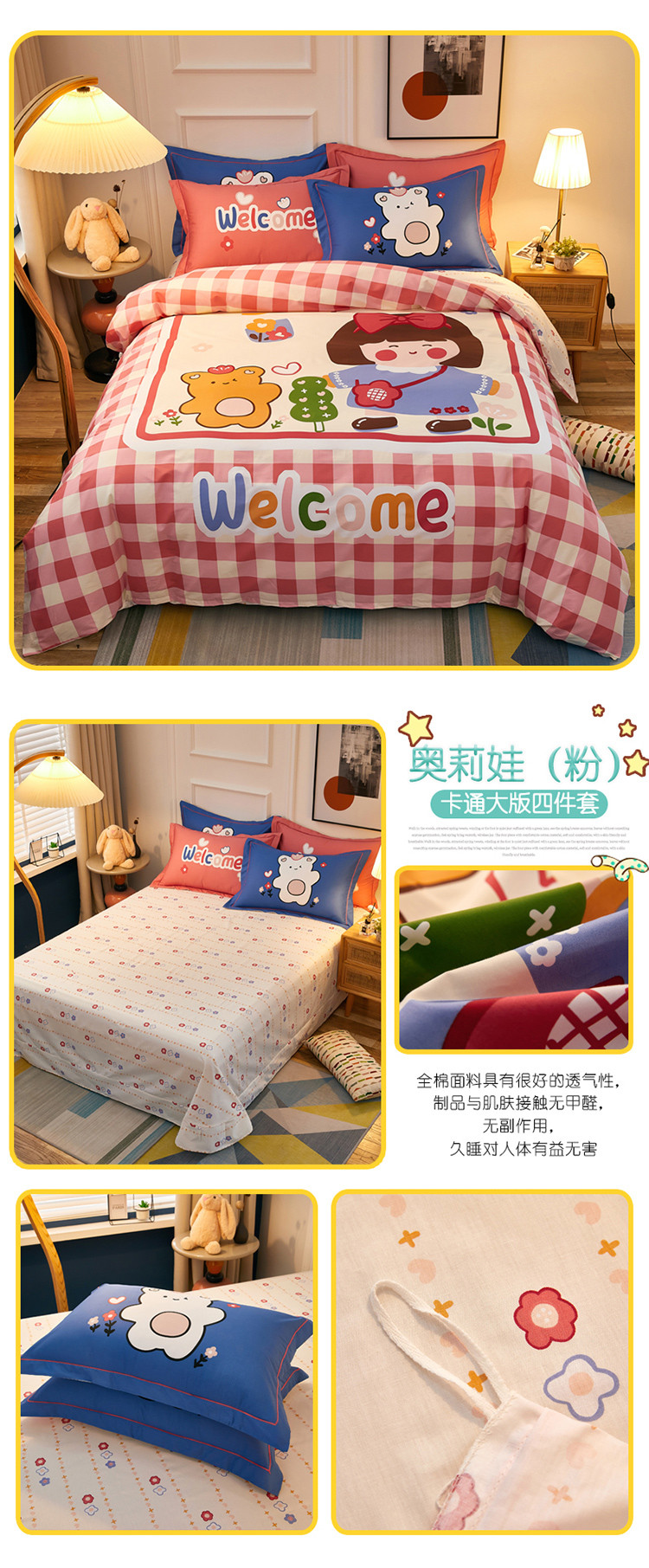 商品名称:雲归梦 2021全棉大版四件套可爱卡通系列 奥莉娃(粉)