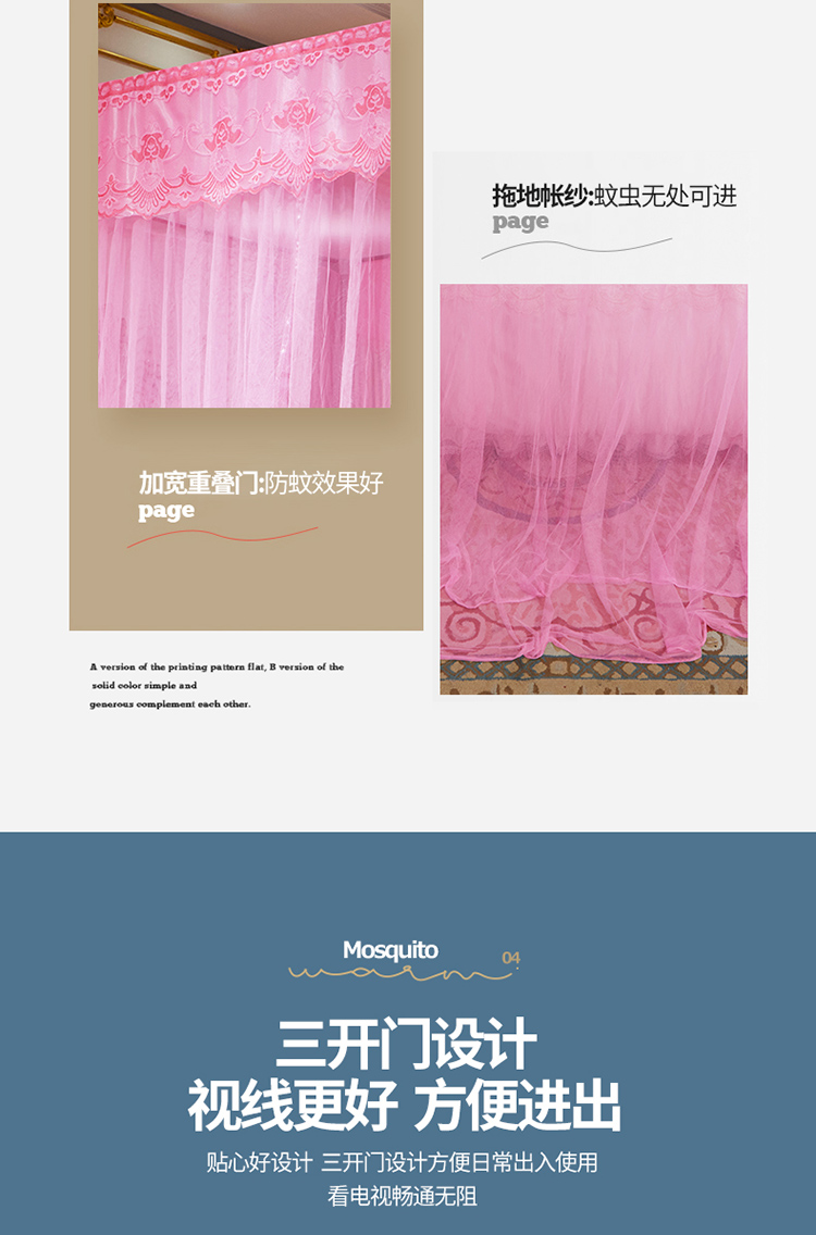 当前位置: 91家纺网 > 商品网购 > 床上用品 > 蚊帐 > 宫廷蚊帐 > 舞夜盛世2025三开门加密落地宫廷蚊帐加厚螺纹接口支架 典雅-粉色