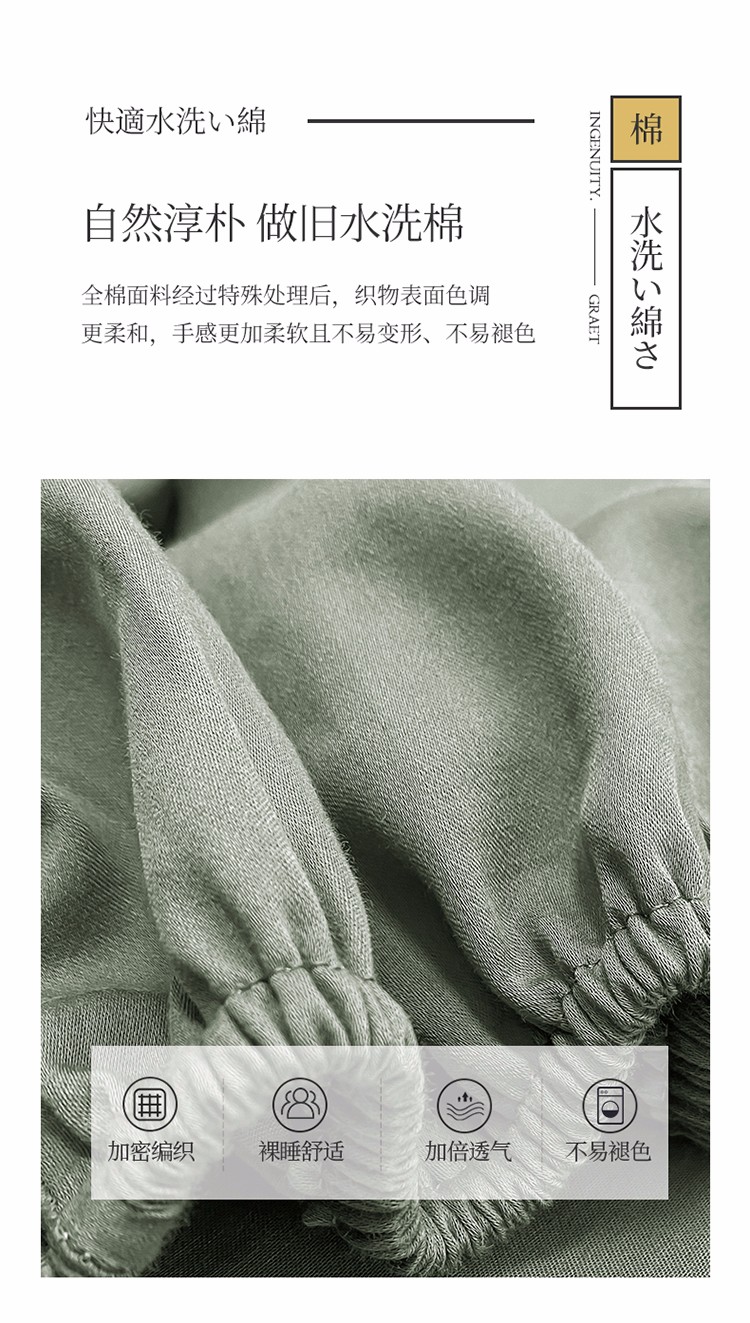 商品名称:蓝巢 2021新款全棉水洗棉混搭款单床笠复古绿