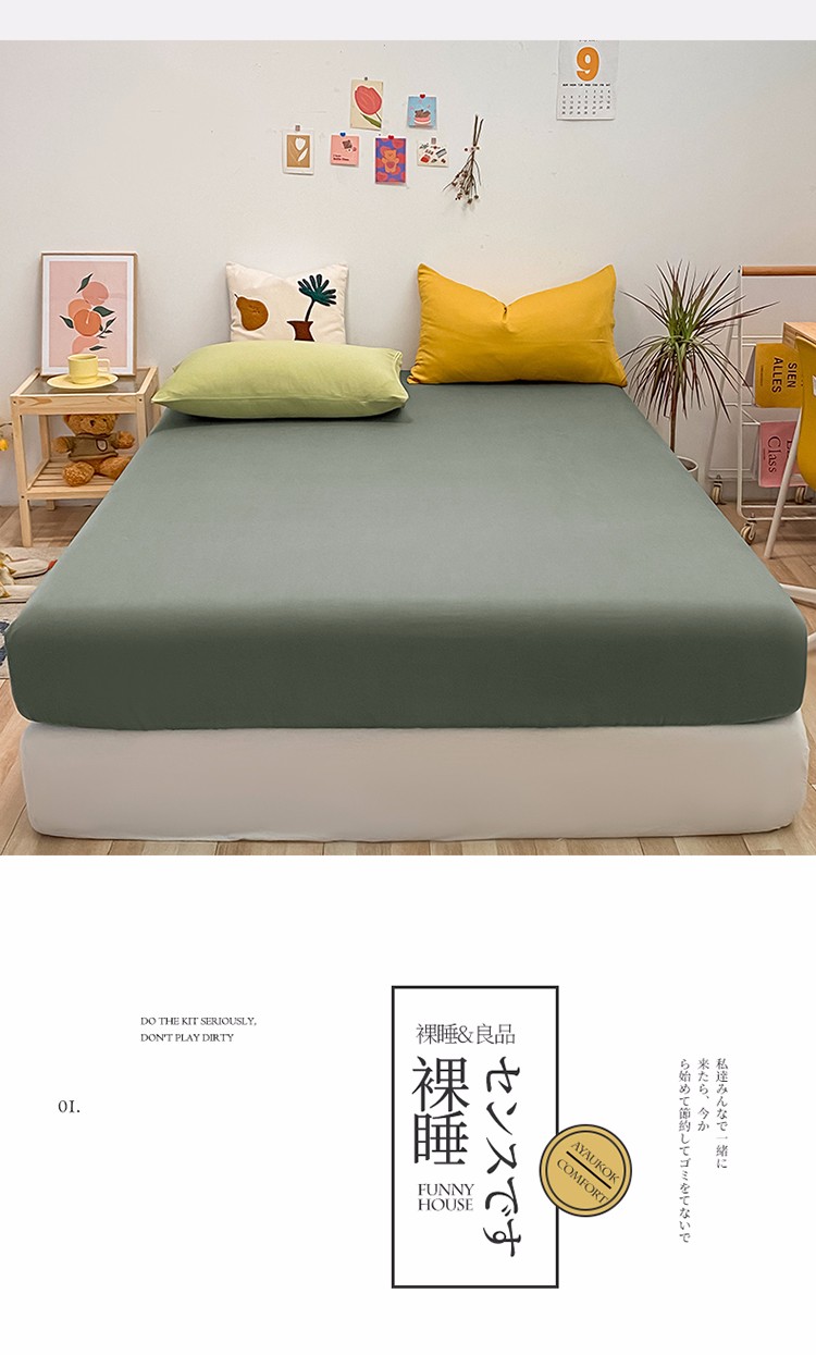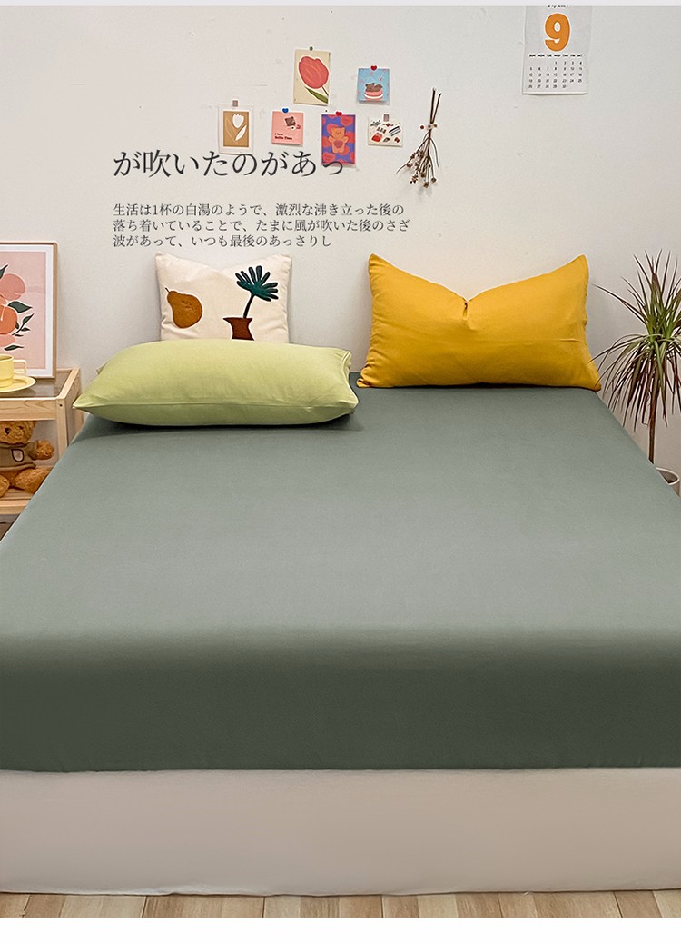蓝巢 2021新款全棉水洗棉混搭款单床笠复古绿