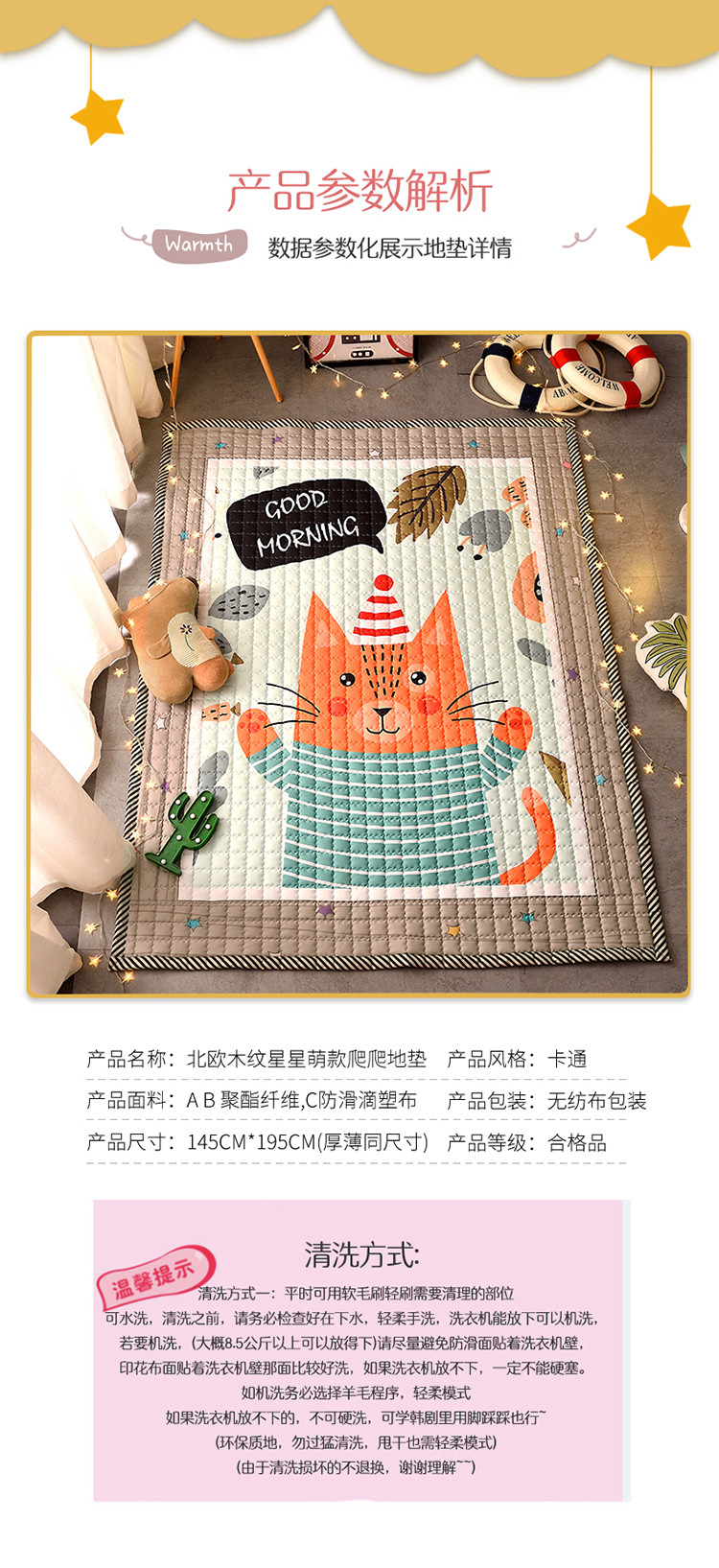 商品名称:新款棉质防滑爬爬垫 宝宝爬行垫 加厚地垫客厅地毯 早安阿哩