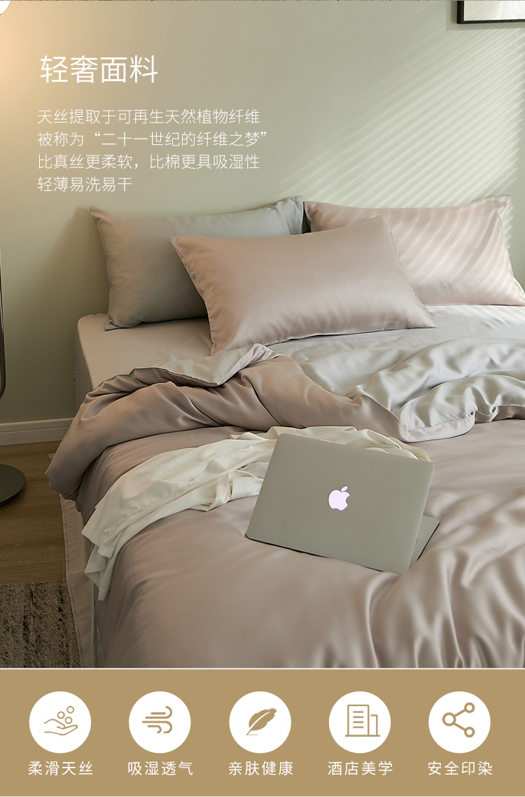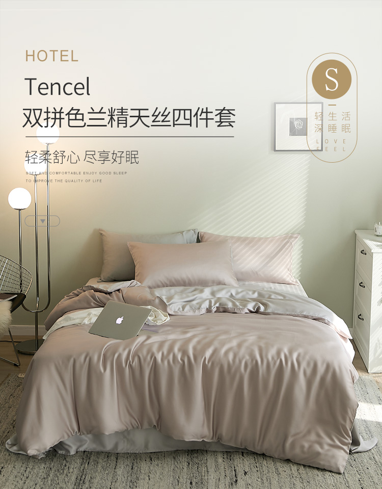 当前位置: 91家纺网 > 商品网购 > 床品套件 > 四件套 > 莱赛尔四件套 > 新款天丝双拼色四件套 洋气裸粉