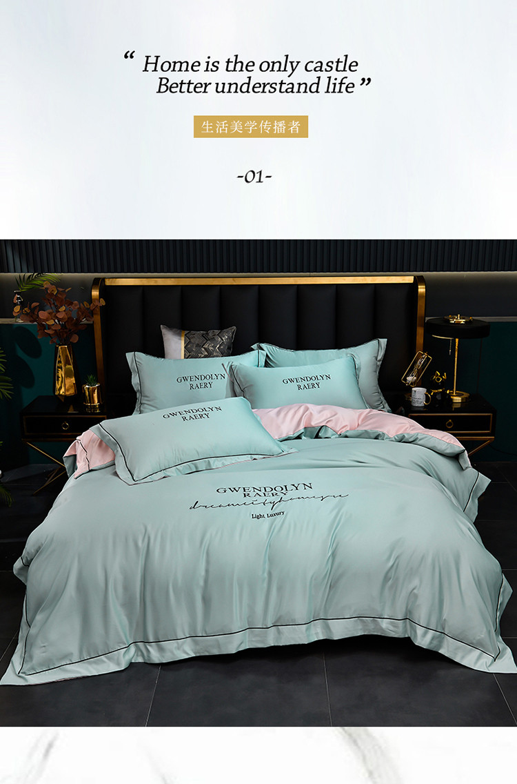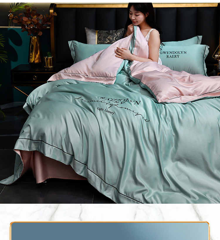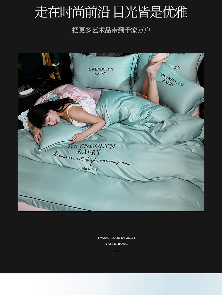 (总)意尚风情 2023新款天丝提花蕾丝刺绣四件套,薄荷绿,宾利兰,豆沙,高级灰,格调灰,姜黄,墨绿,少女粉,香芋紫,雅绿