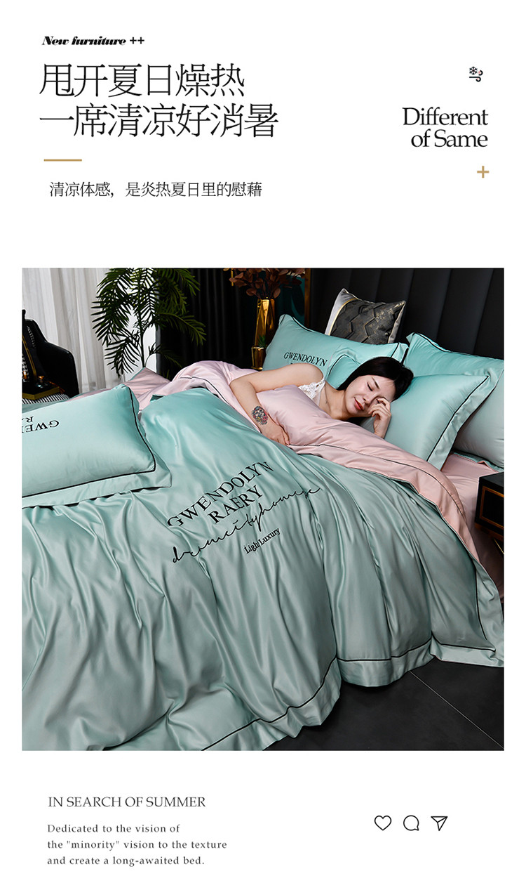 (总)意尚风情 2022新款莫代尔天丝水洗真丝绣花夏被四件套,宾利蓝,纯白,粉玉,高级灰,墨绿,深蓝,水绿,香槟