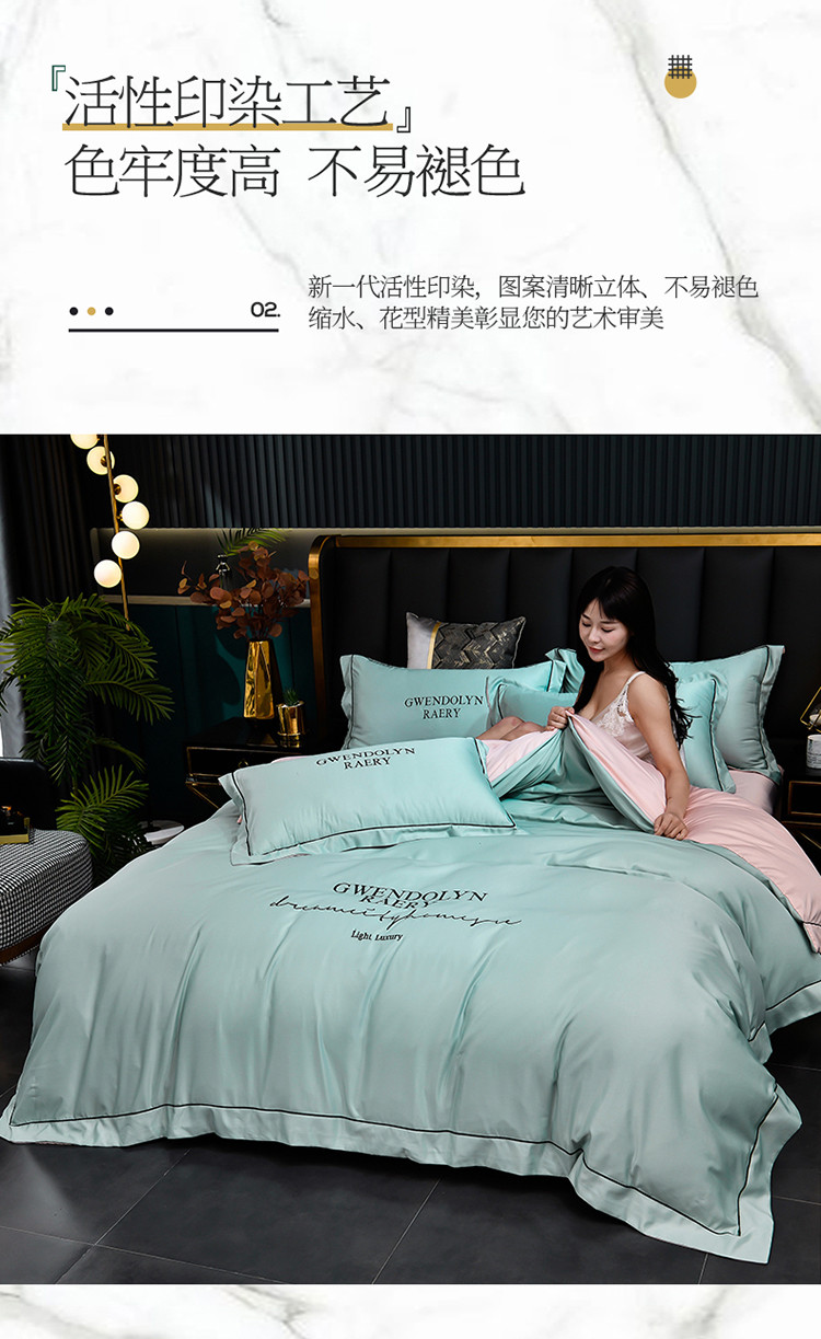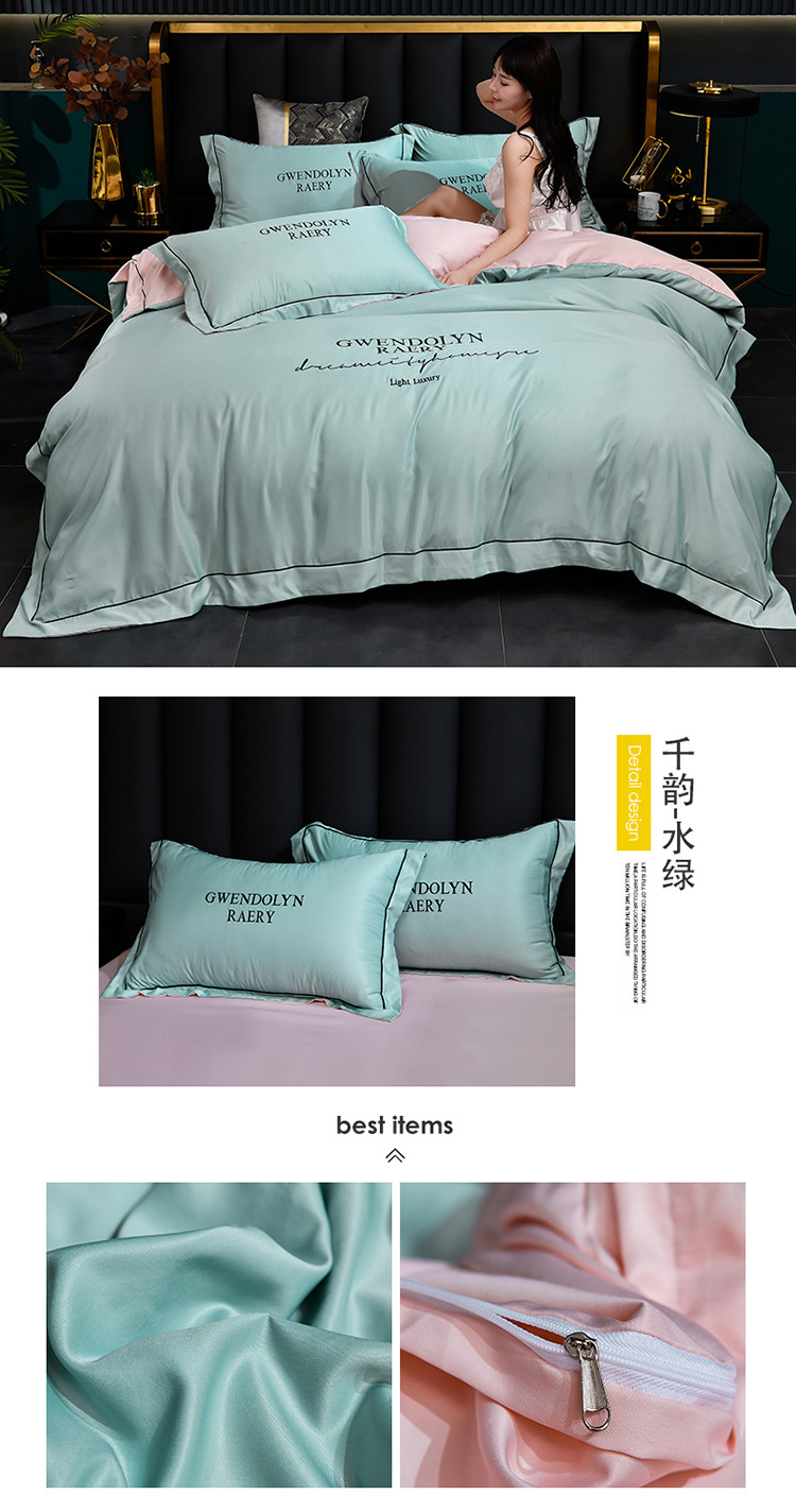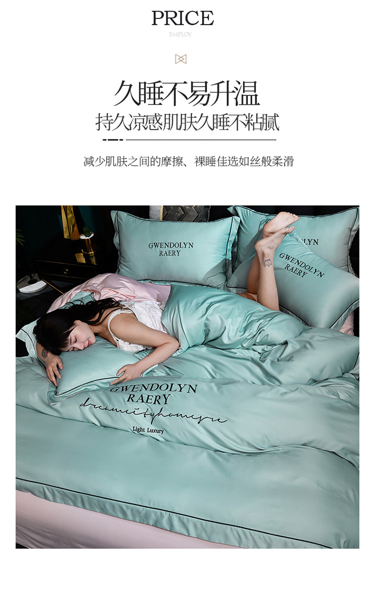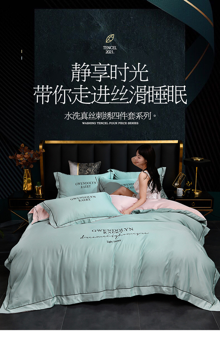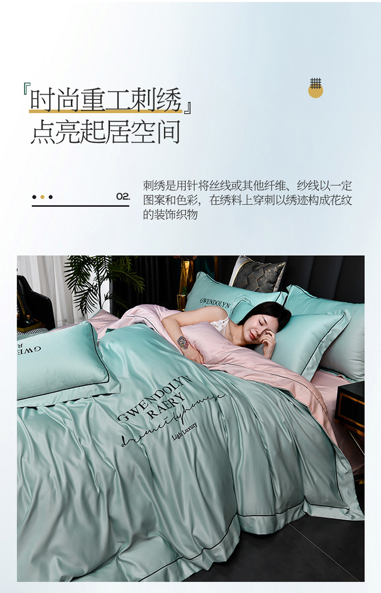 商品名称:意尚风情2023新款绣花水洗真丝四件套 千韵-水绿