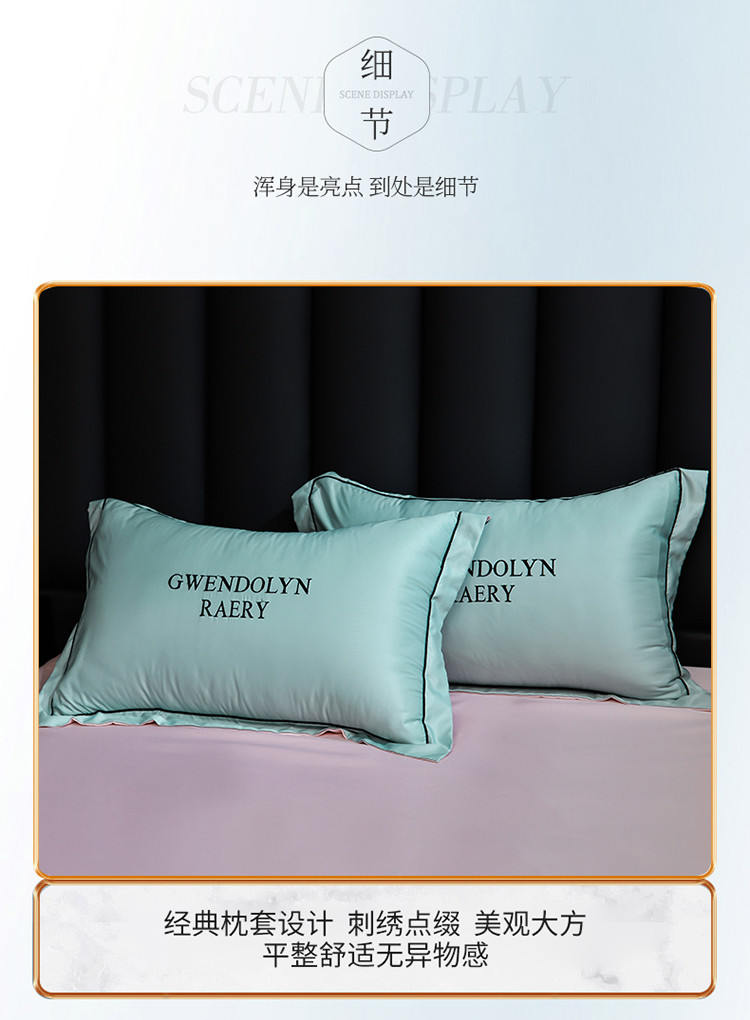 (总)意尚风情2023水洗真丝拼色绣花工艺款四件套,宝石蓝,皓月白+绅士灰,魅紫+浅咖,深海蓝+樱花粉,水绿+樱花粉,香槟+绅士灰,樱花粉+绅士灰,祖母绿+姜黄