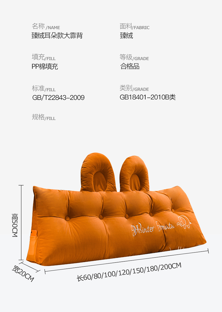 商品名称:一兰家纺 2021新款臻绒大耳朵靠垫大靠背 轻奢橘