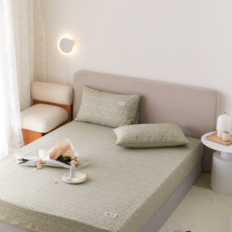8小时2021新款无印风印花槿色水洗棉单床笠 花开黄