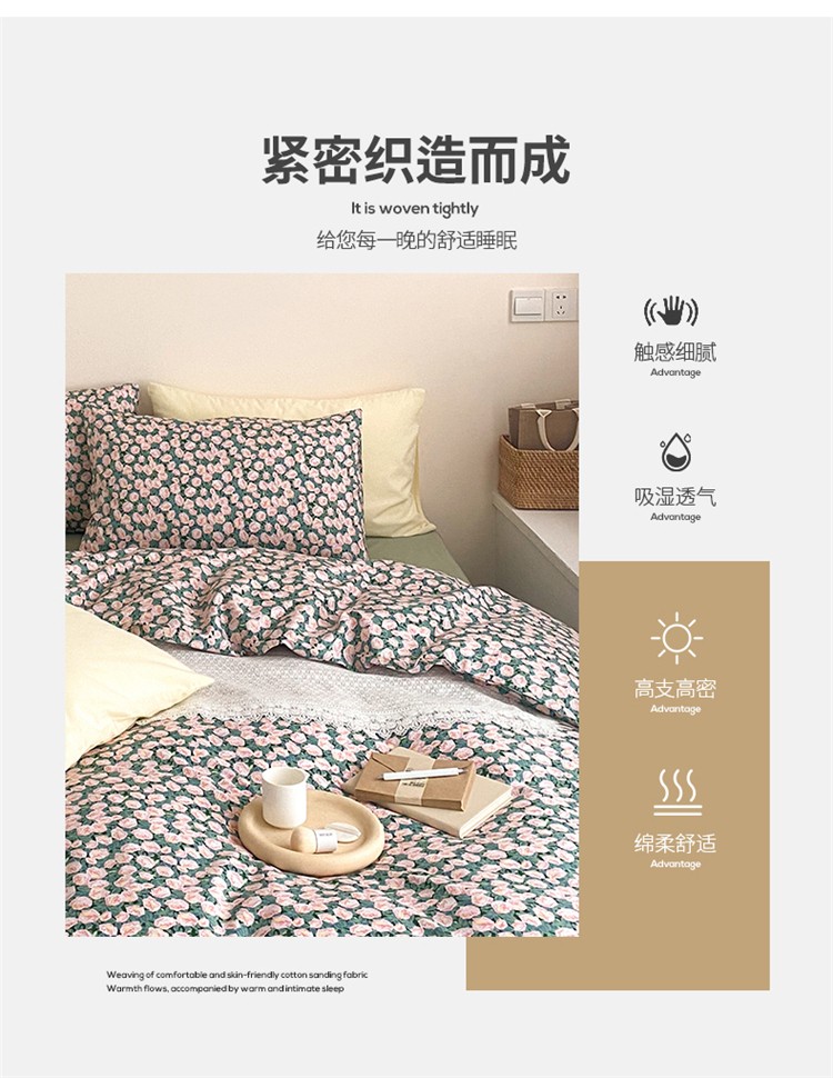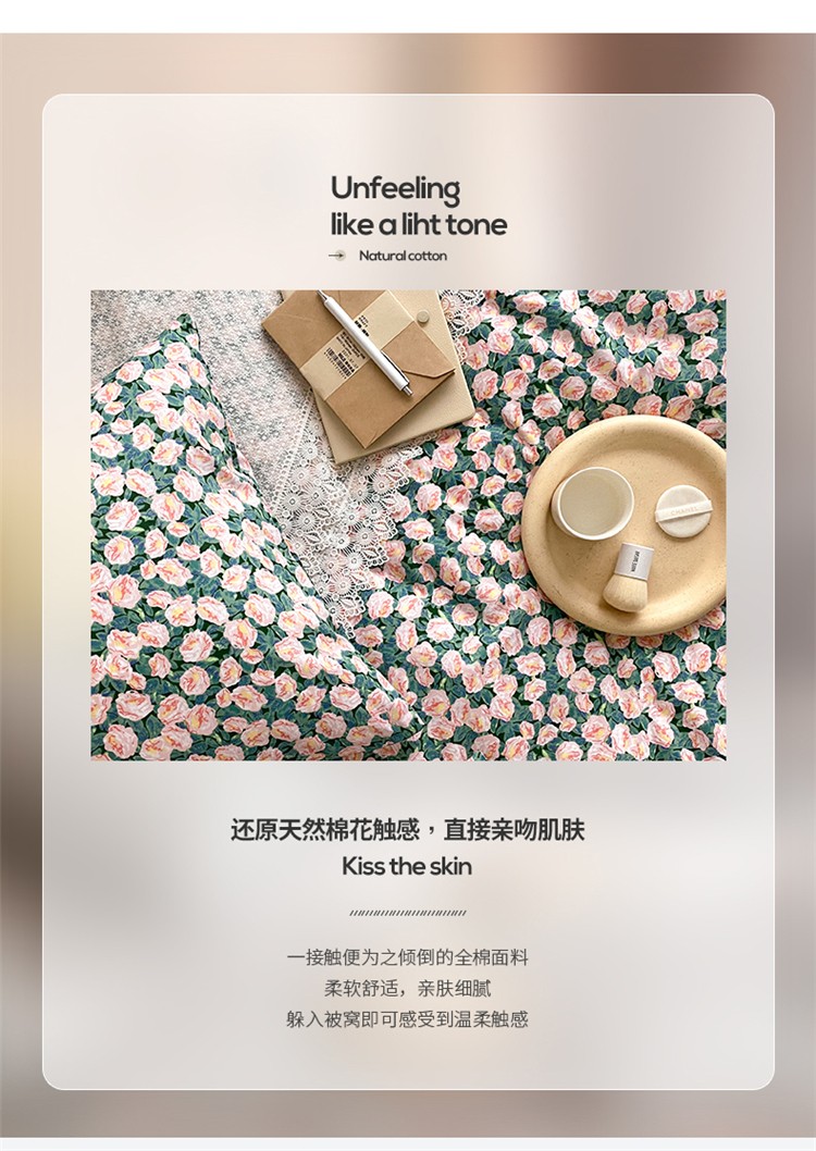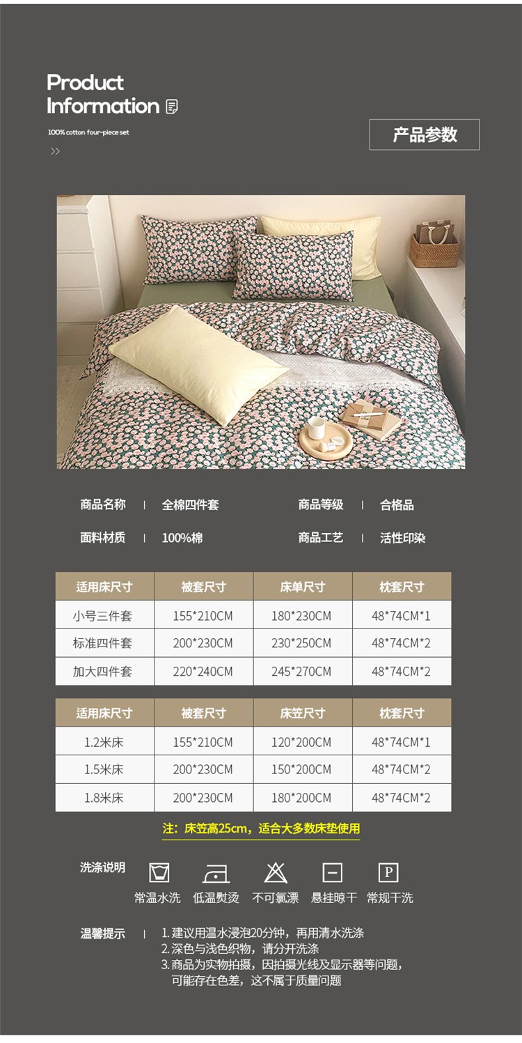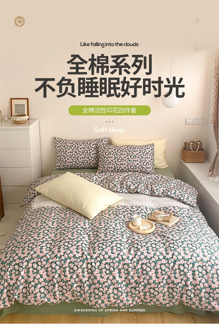 窝米 2020春夏新品全棉13372四件套小波西风系列小花花,小花花