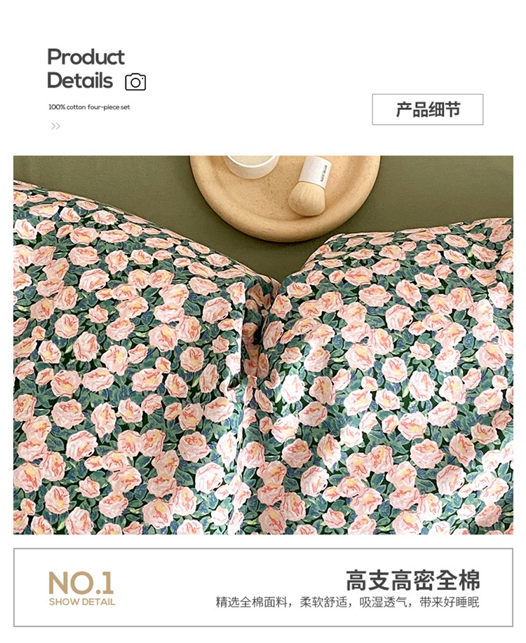 (总)窝米 2025新款全棉纯棉双层纱大版印花花卉四件套-第一组,赫美,绿野香,弥初,瑞优,云缦