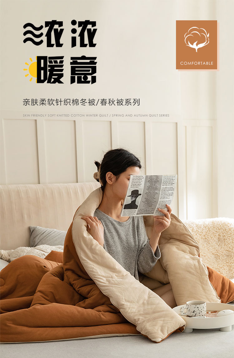 商品名称:寐眠 2021新款针织棉纯色春秋被冬被 焦糖+奶茶