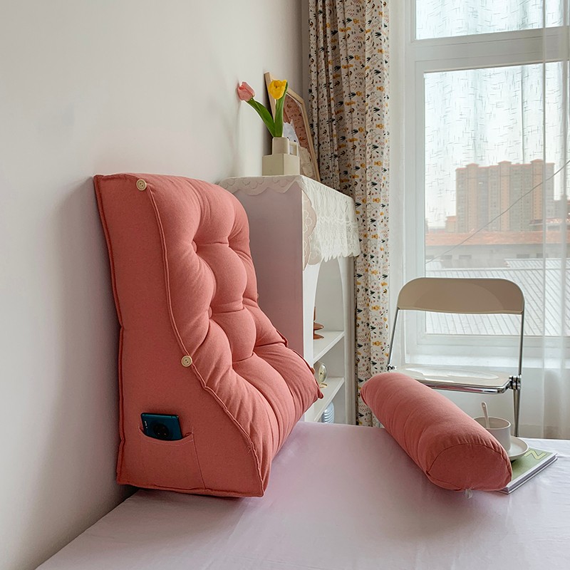 永光家居 亚麻工学靠垫 床头靠垫抱枕 卧室腰枕大靠垫香妃粉