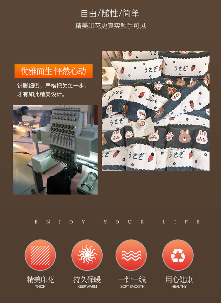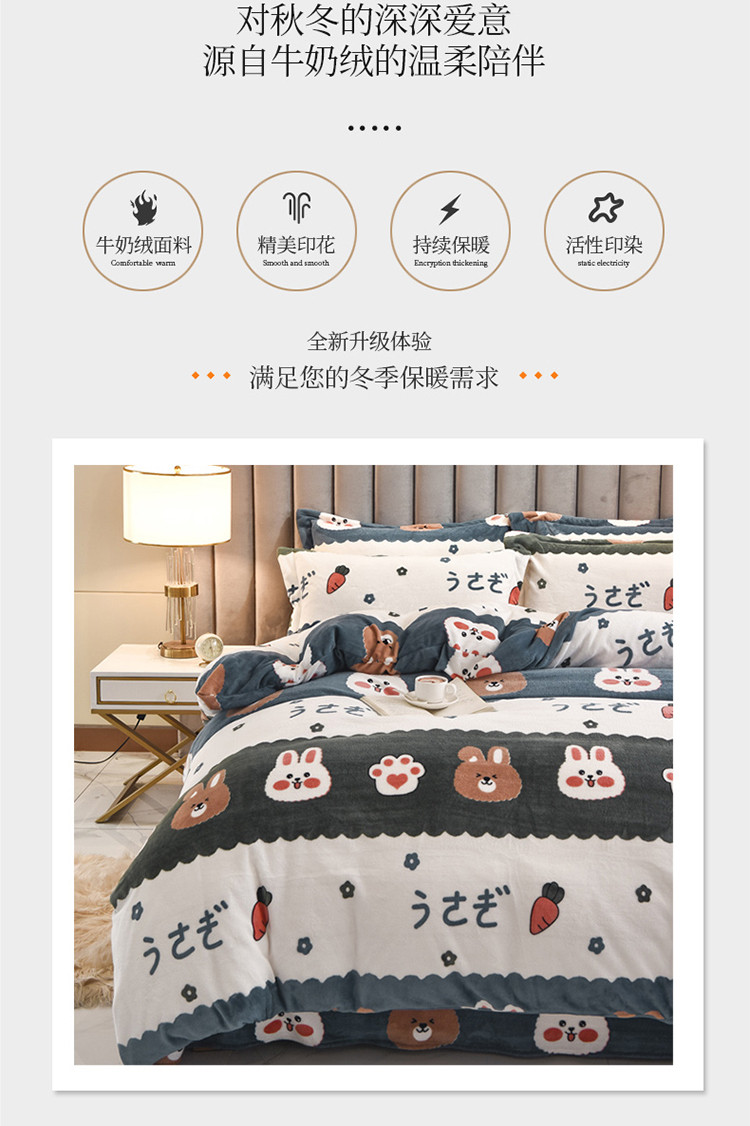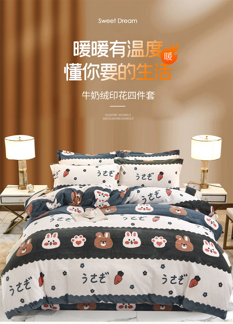 当前位置: 91家纺网 > 商品网购 > 床品套件 > 四件套 > 牛奶绒四件套 > 锦罗绣 2021新款牛奶绒印花四件套 萝卜兔