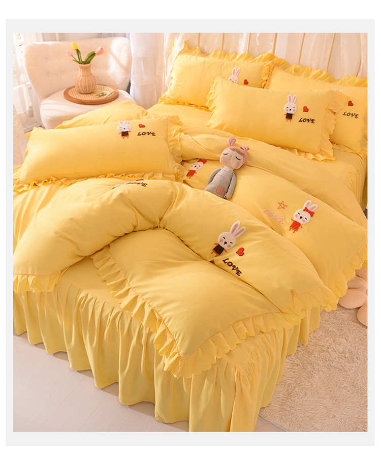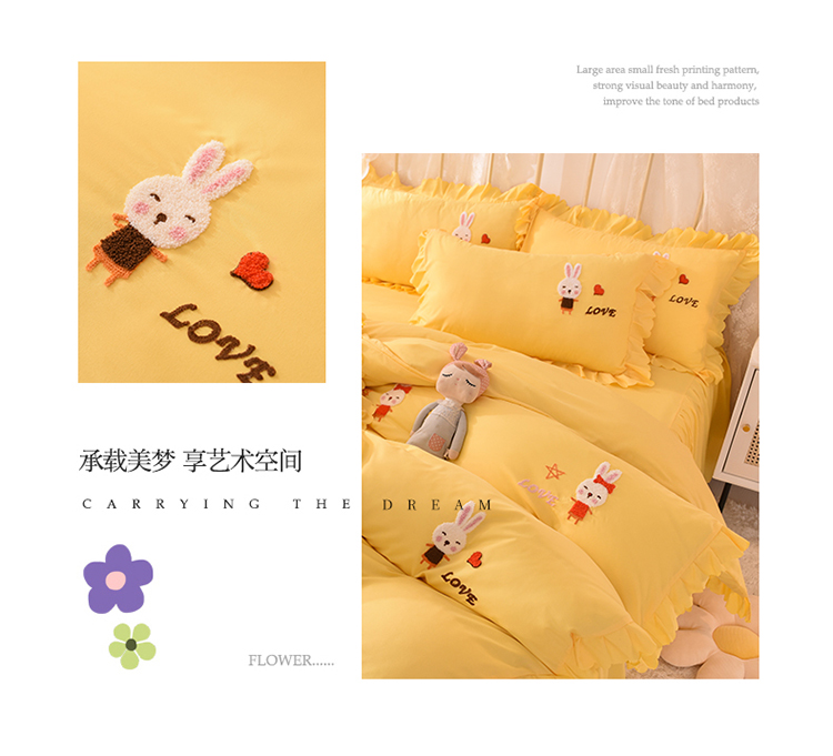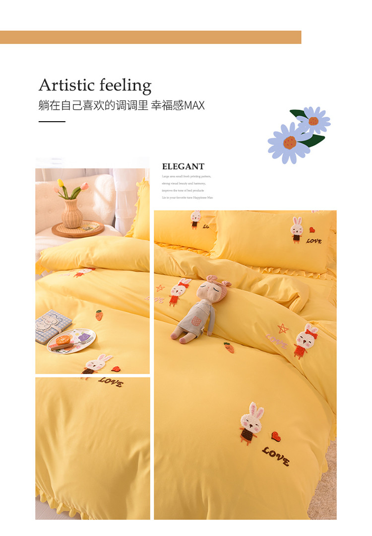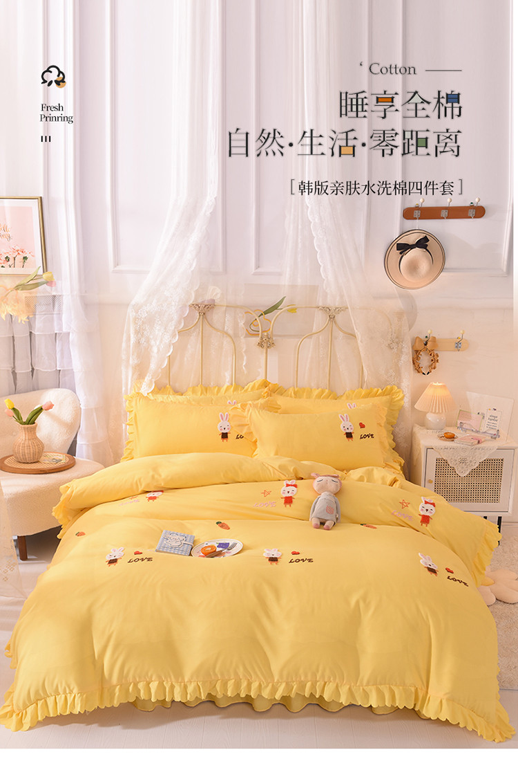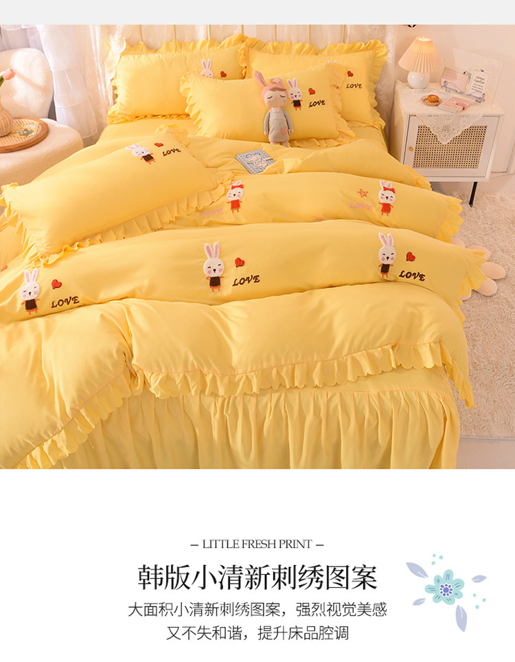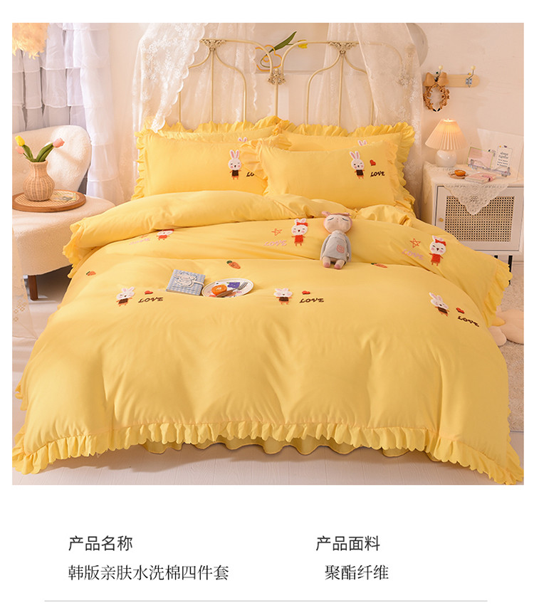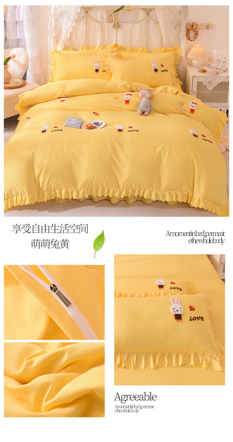 当前位置: 91家纺网 > 商品网购 > 床品套件 > 四件套 > 普通磨毛四件套 > 梦之岛2021新款萌萌兔韩版磨毛蕾丝四件套萌萌兔黄