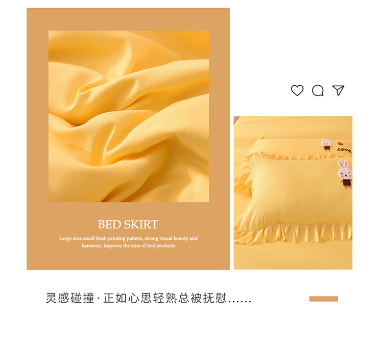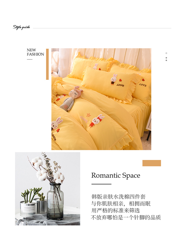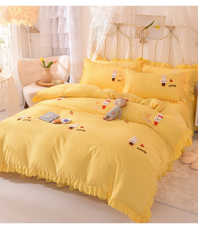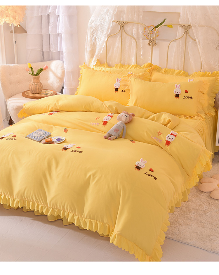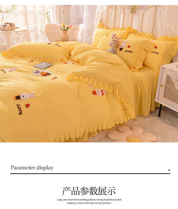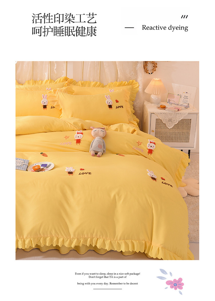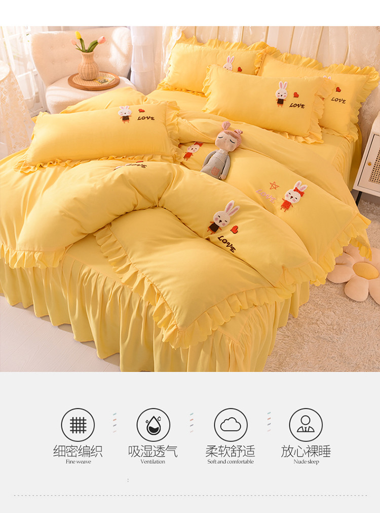 当前位置: 91家纺网 > 商品网购 > 床品套件 > 四件套 > 普通磨毛四件套 > 梦之岛2021新款萌萌兔韩版磨毛蕾丝四件套萌萌兔黄