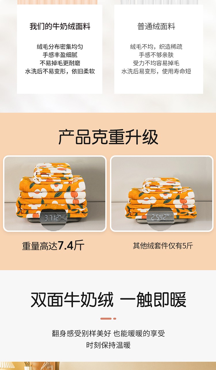 商品名称:凡客2021秋冬重3.8kg高克重牛奶绒印花四件套片片柔情紫