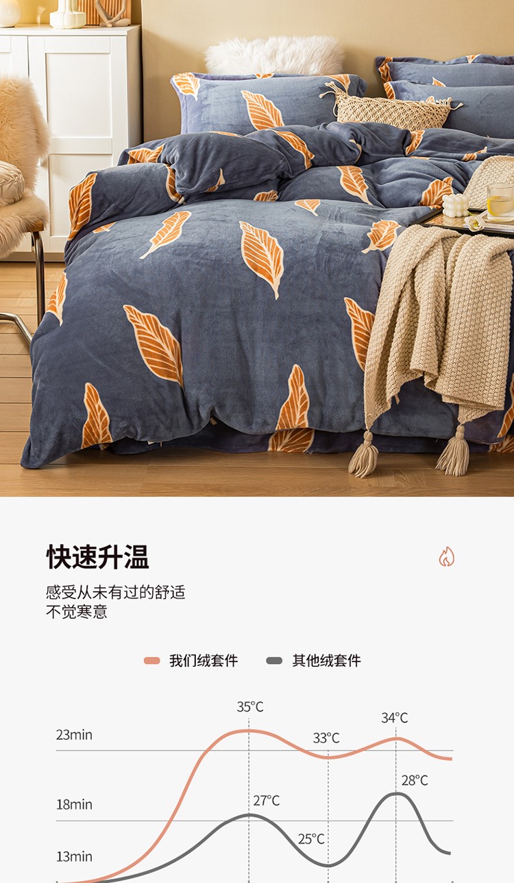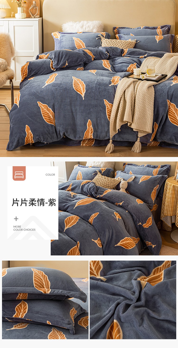 凡客2021秋冬重3.8kg高克重牛奶绒印花四件套片片柔情紫