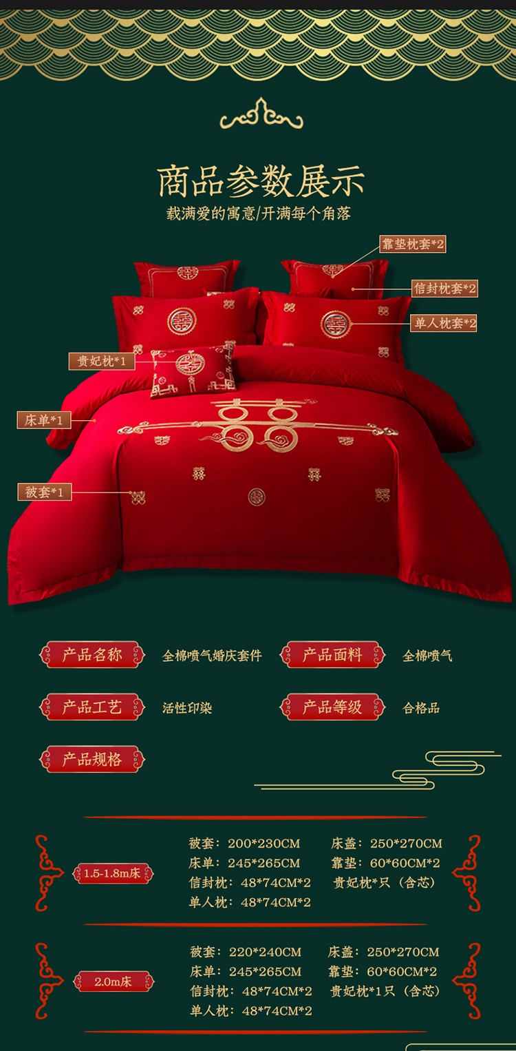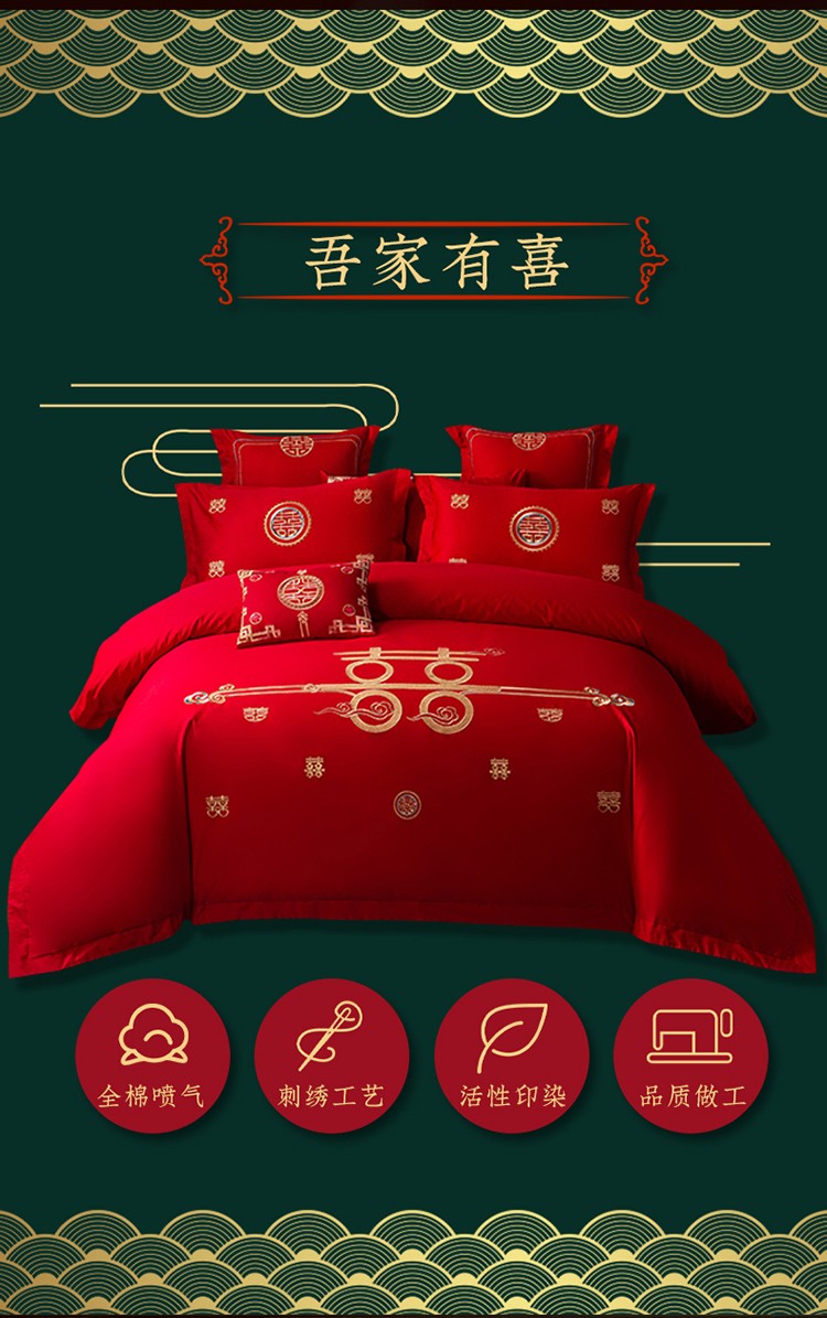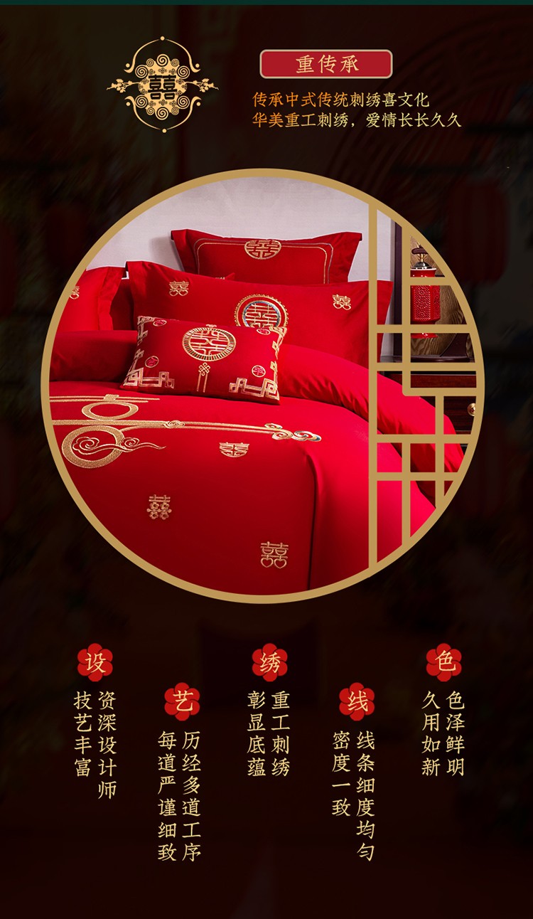 当前位置: 91家纺网 > 商品网购 > 床品套件 > 四件套 > 全棉普通四件套 > 博之洋婚庆 新款全棉绣花婚庆四件套中国喜事