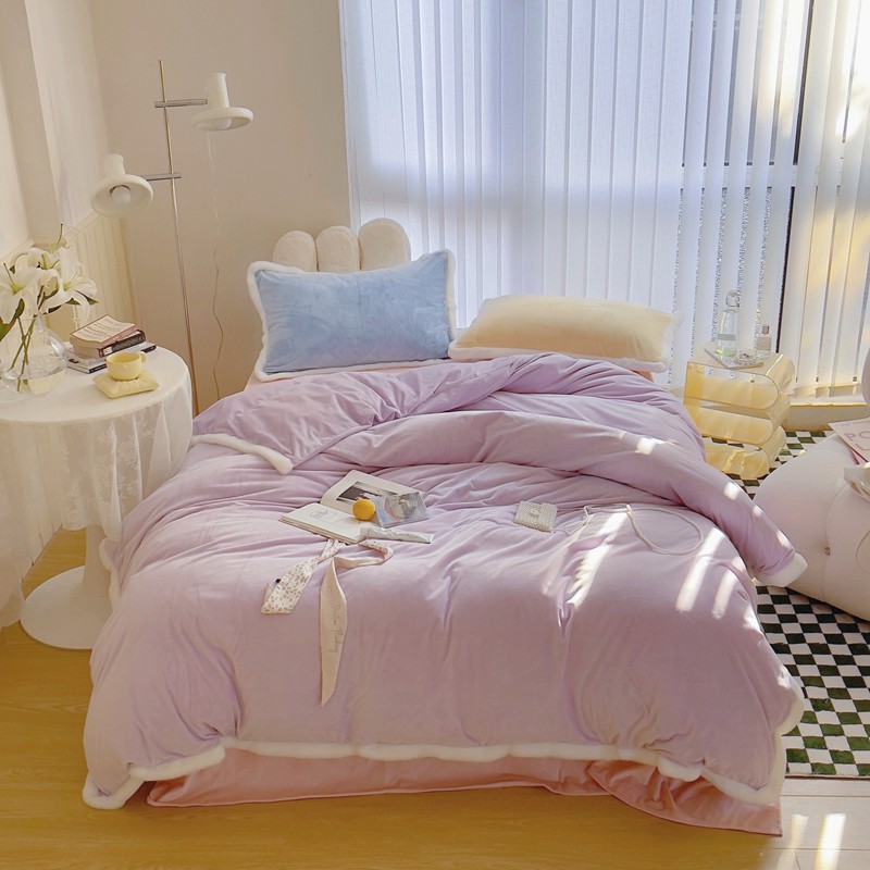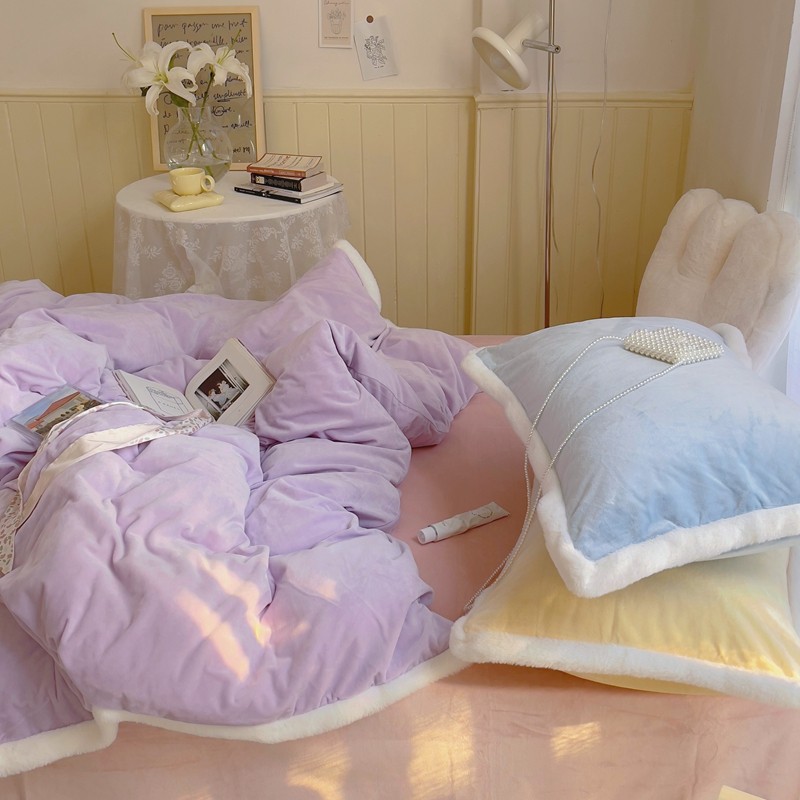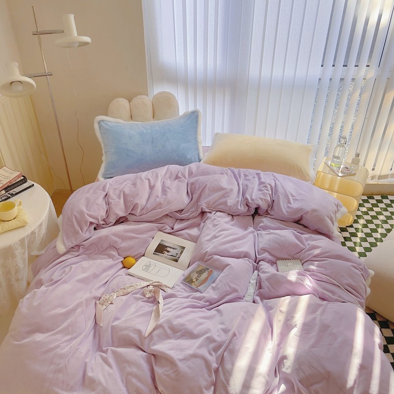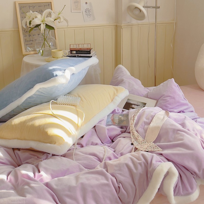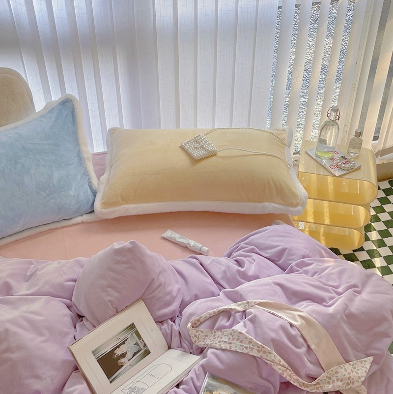 当前位置: 91家纺网 > 商品网购 > 床品套件 > 四件套 > 磨绒四件套 > 圆岛家新品纺撞色混搭系马卡龙ins慢热风冬款暖绒四件套 香芋紫-枕套黄拼蓝+床单樱花粉