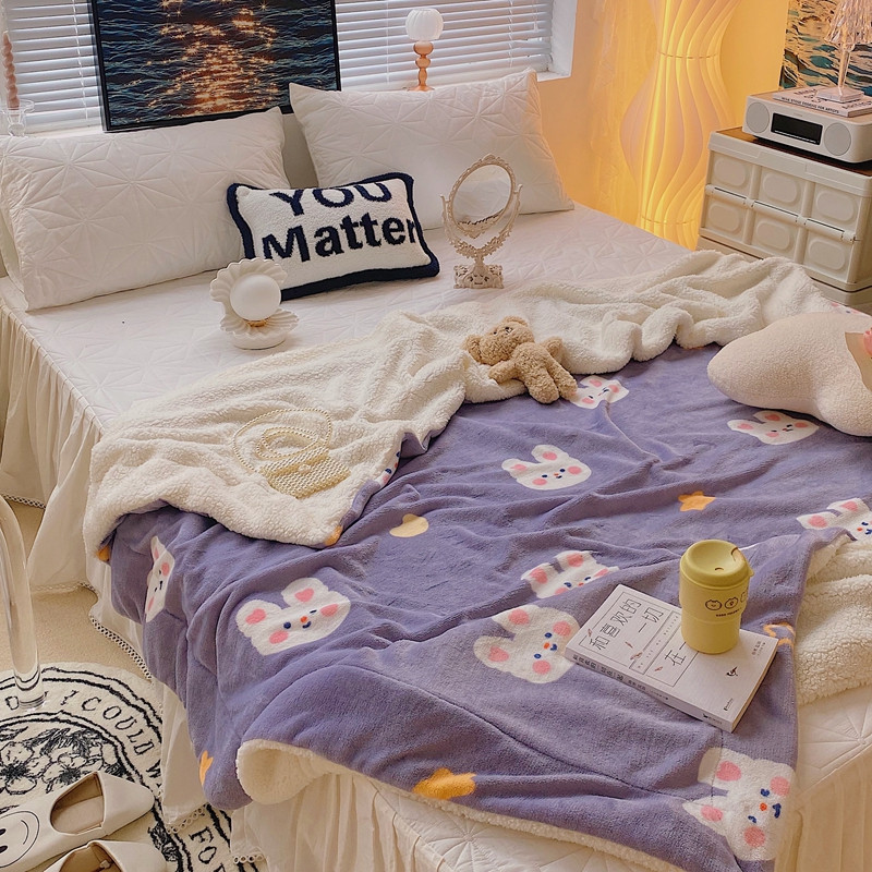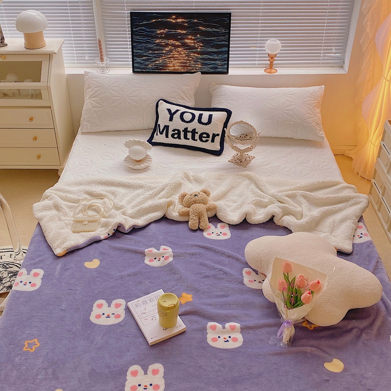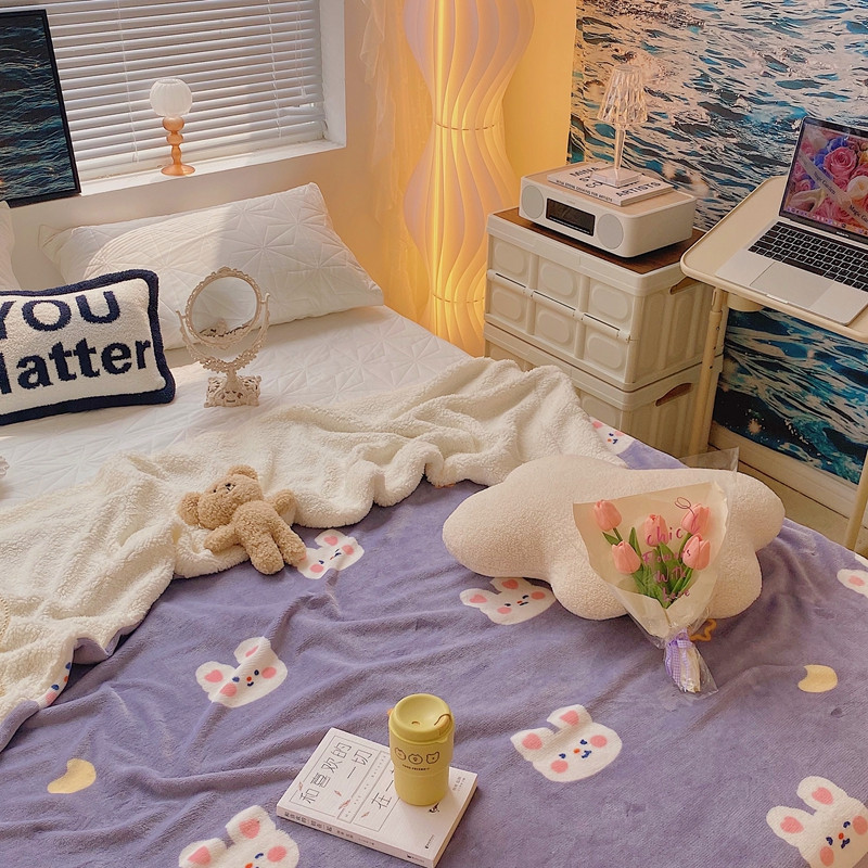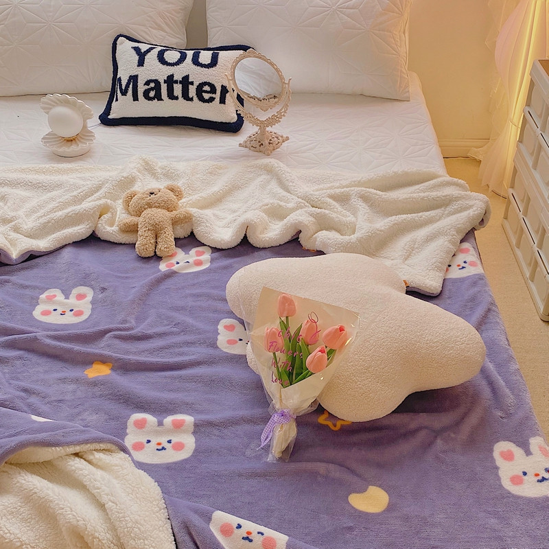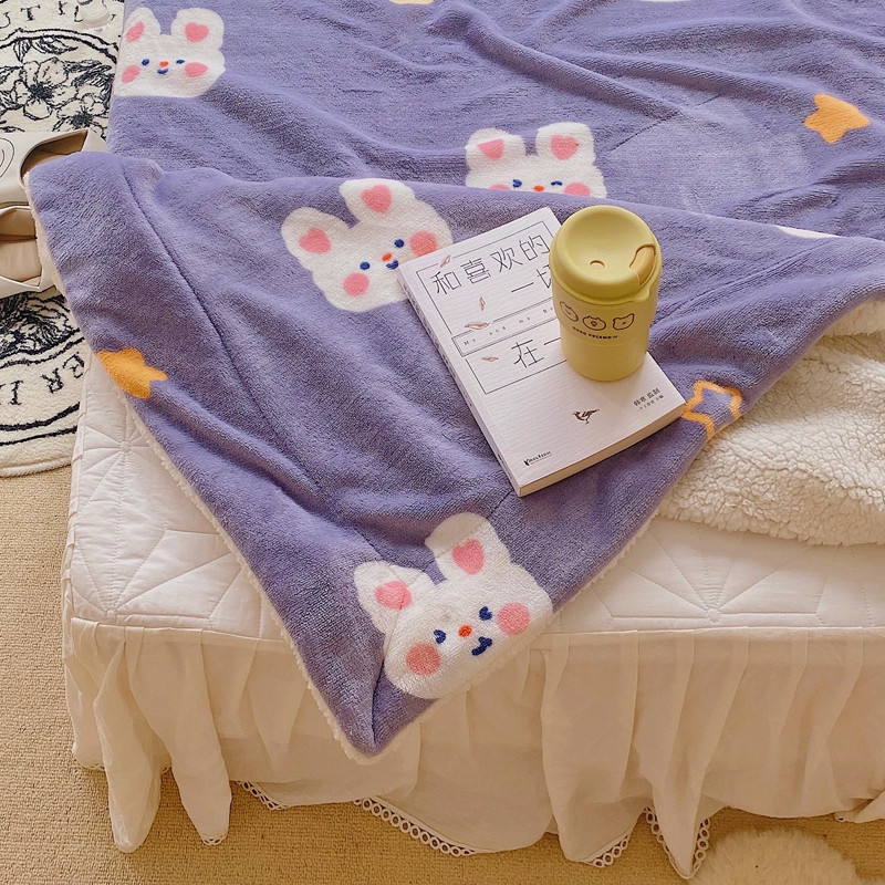 商品名称:顾里 2021新款ins网红少女心暖肤羊羔绒毯实拍图月亮小兔